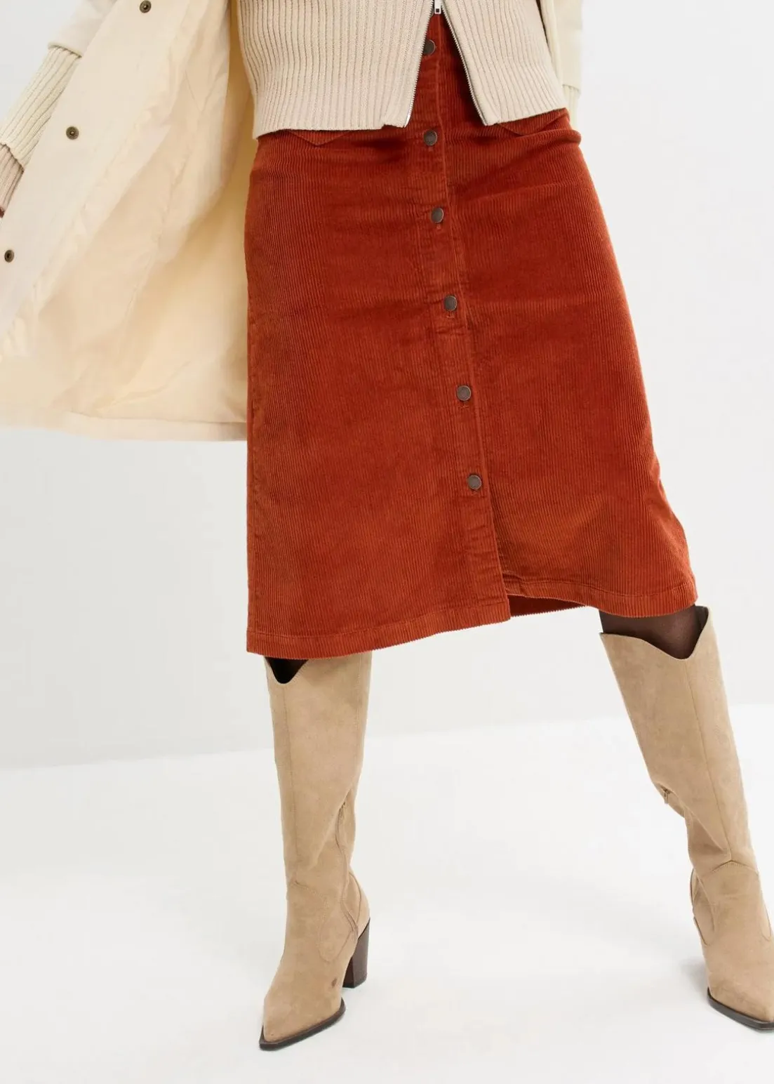 Schöner Cordrock mit Stretch, Midi