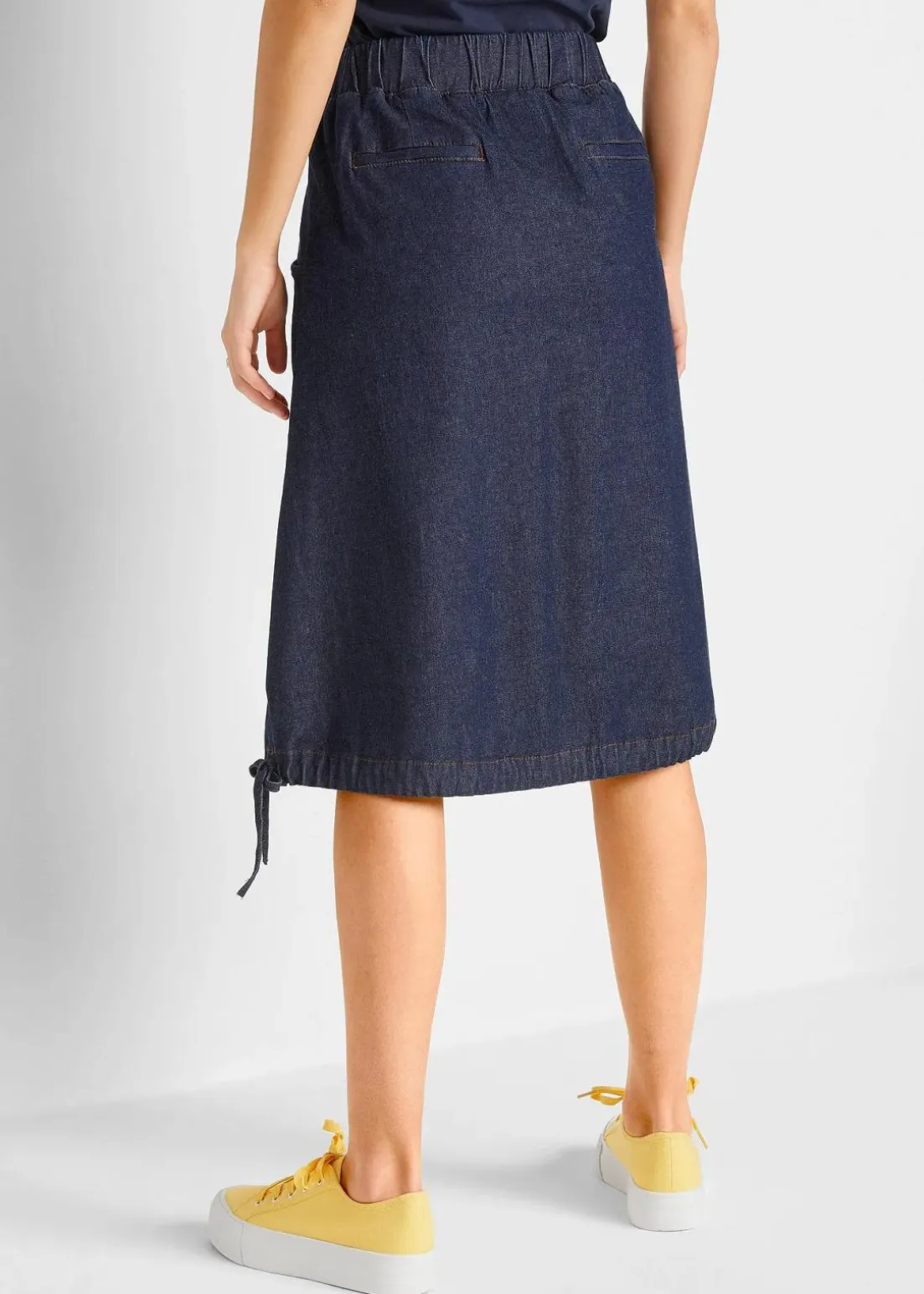 Raffinierter Stretch-Jeansrock mit elastischem Bund und Bindeband am Saum.