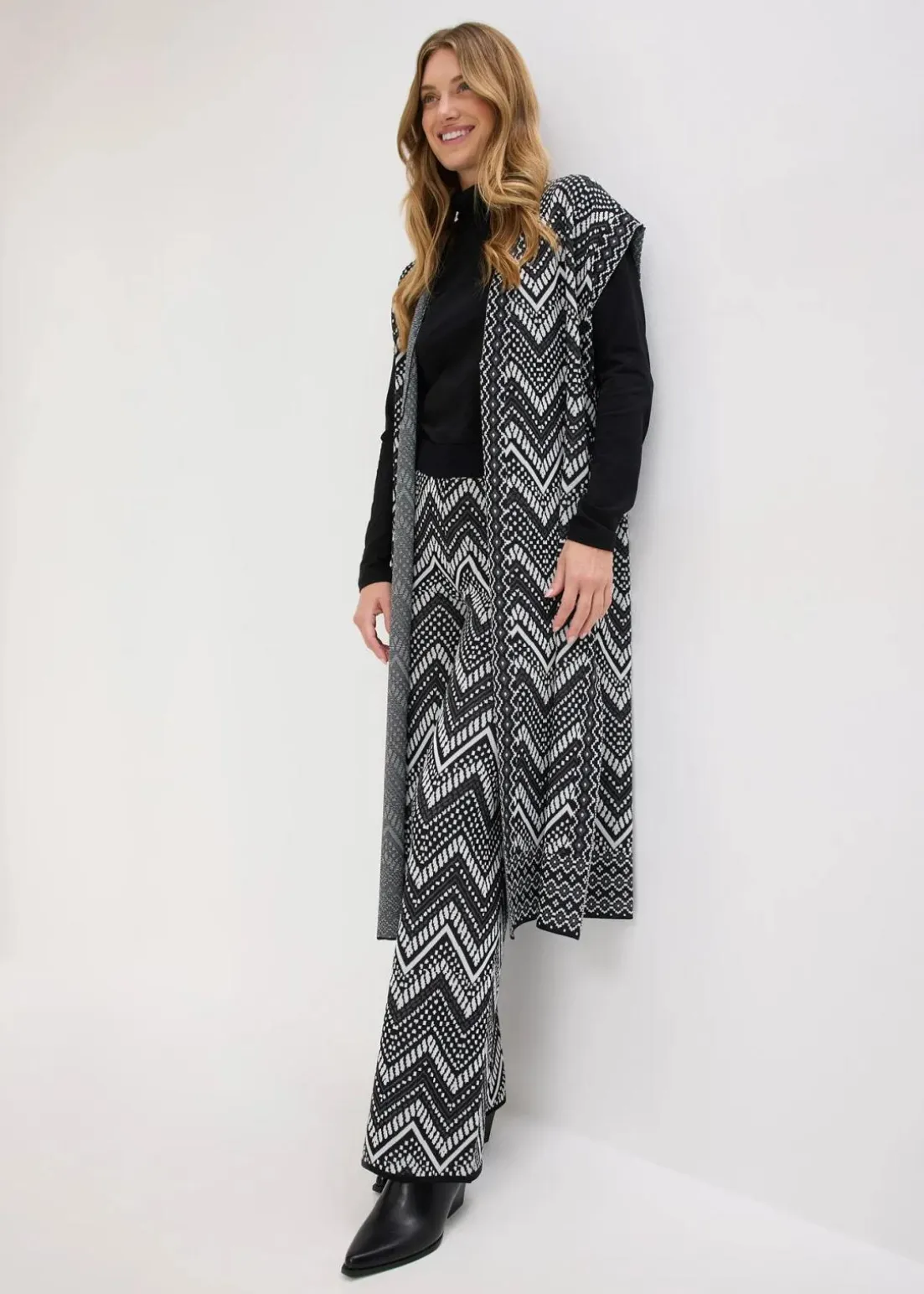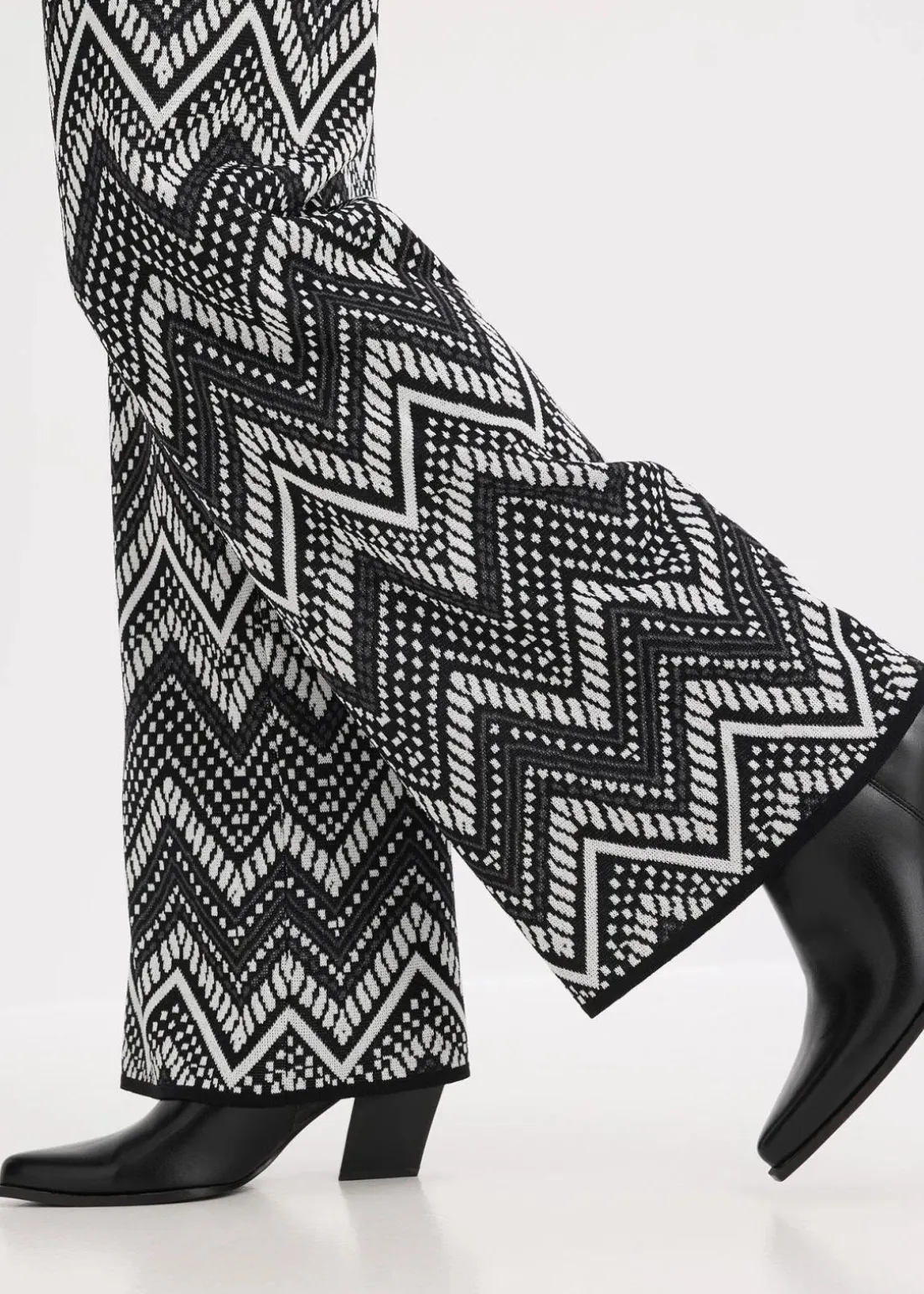 weite Jacquard Strickhose mit Gummibund und modischem Muster