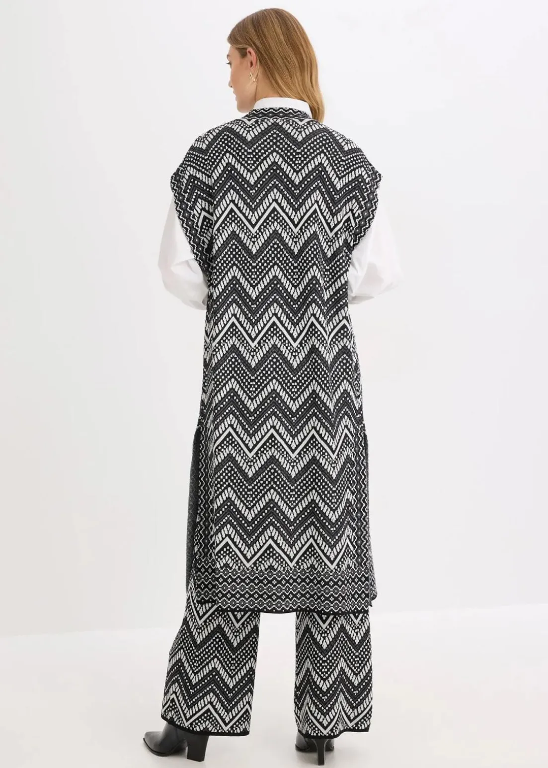 modische Jacquard-Strick-Weste mit überschnittener Schulter und Seitenschlitzen