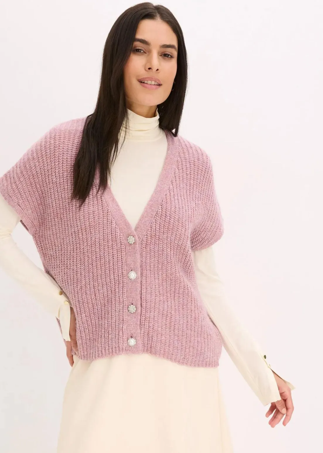 elegante Strick-Weste mit dekorativen Knöpfen