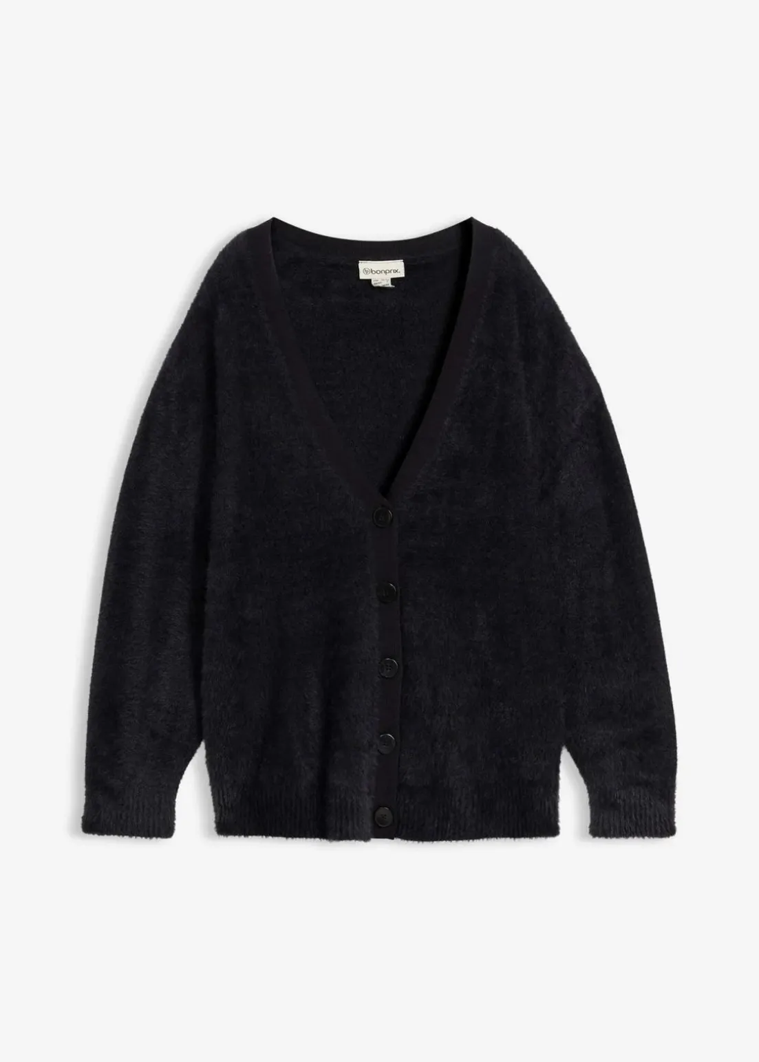 Langärmlige Strickjacke aus Federgarn mit Knopfverschluss vorne