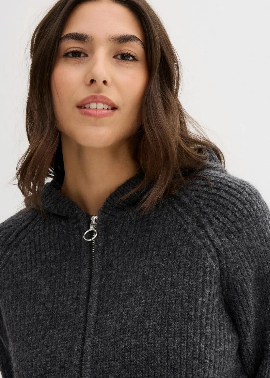 Rippstrick-Cardigan mit Reisverschluss