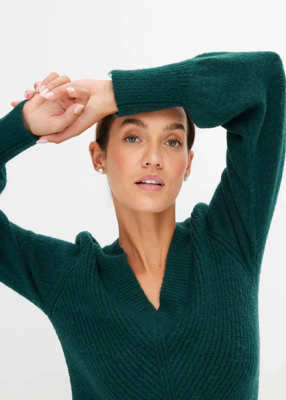 - Passformvorteile:betont das Dekolleté, streckender V-Ausschnitt
