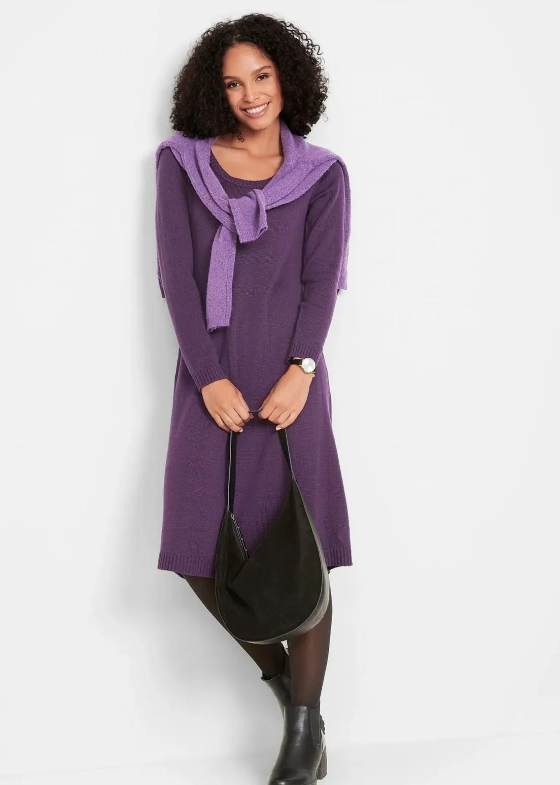 Vielseitig kombinierbares Strickkleid in ausgestellter und figurumspielender Form