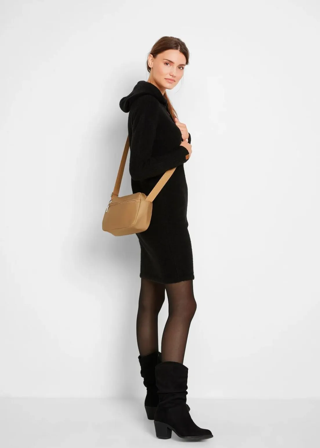 Leichtes, locker geschnittenes Strickkleid mit Kapuze und Bindebändern