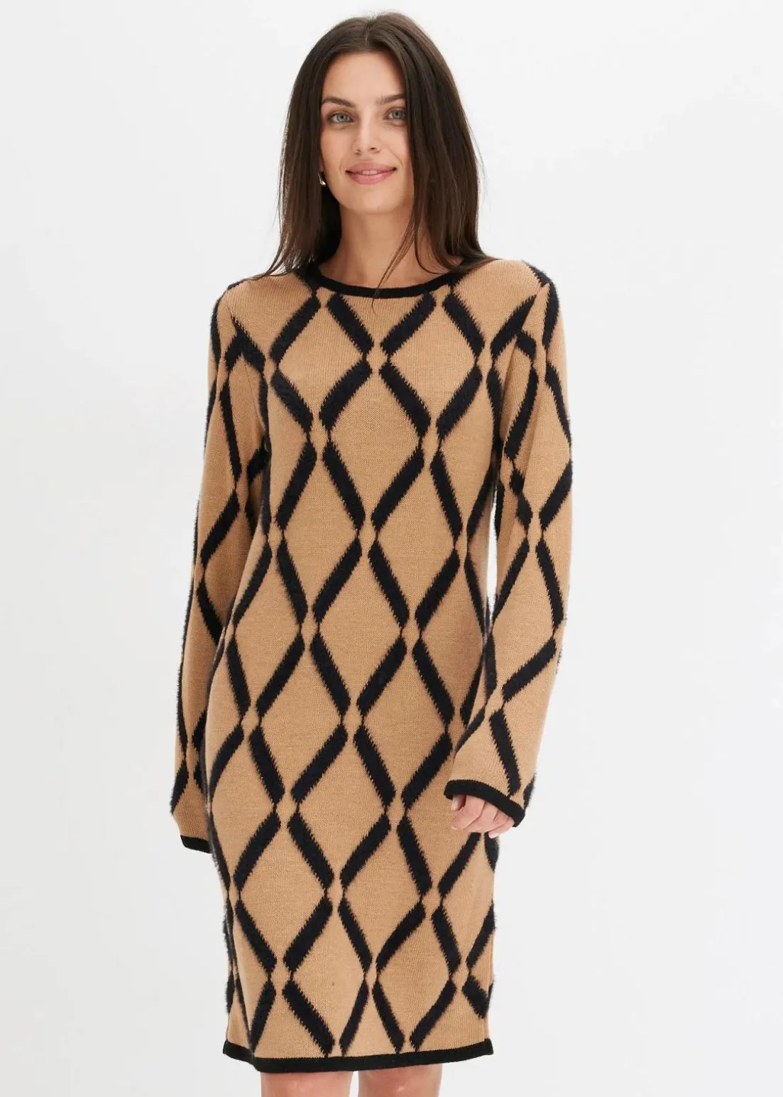 schickes Strickkleid mit Rautenmuster aus Federgarn
