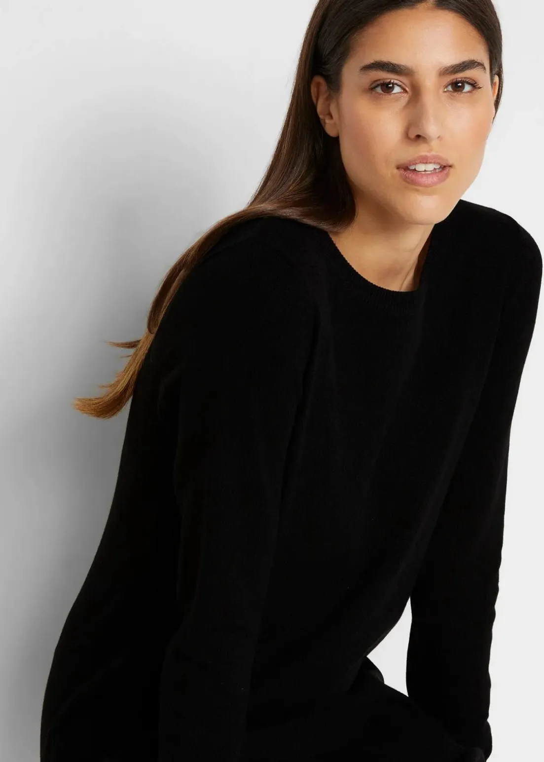Knieumspielendes Langarmkleid mit Rundhals-Ausschnitt
