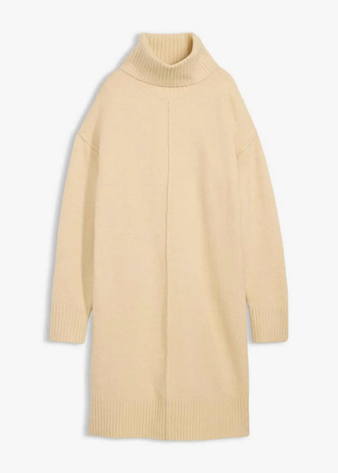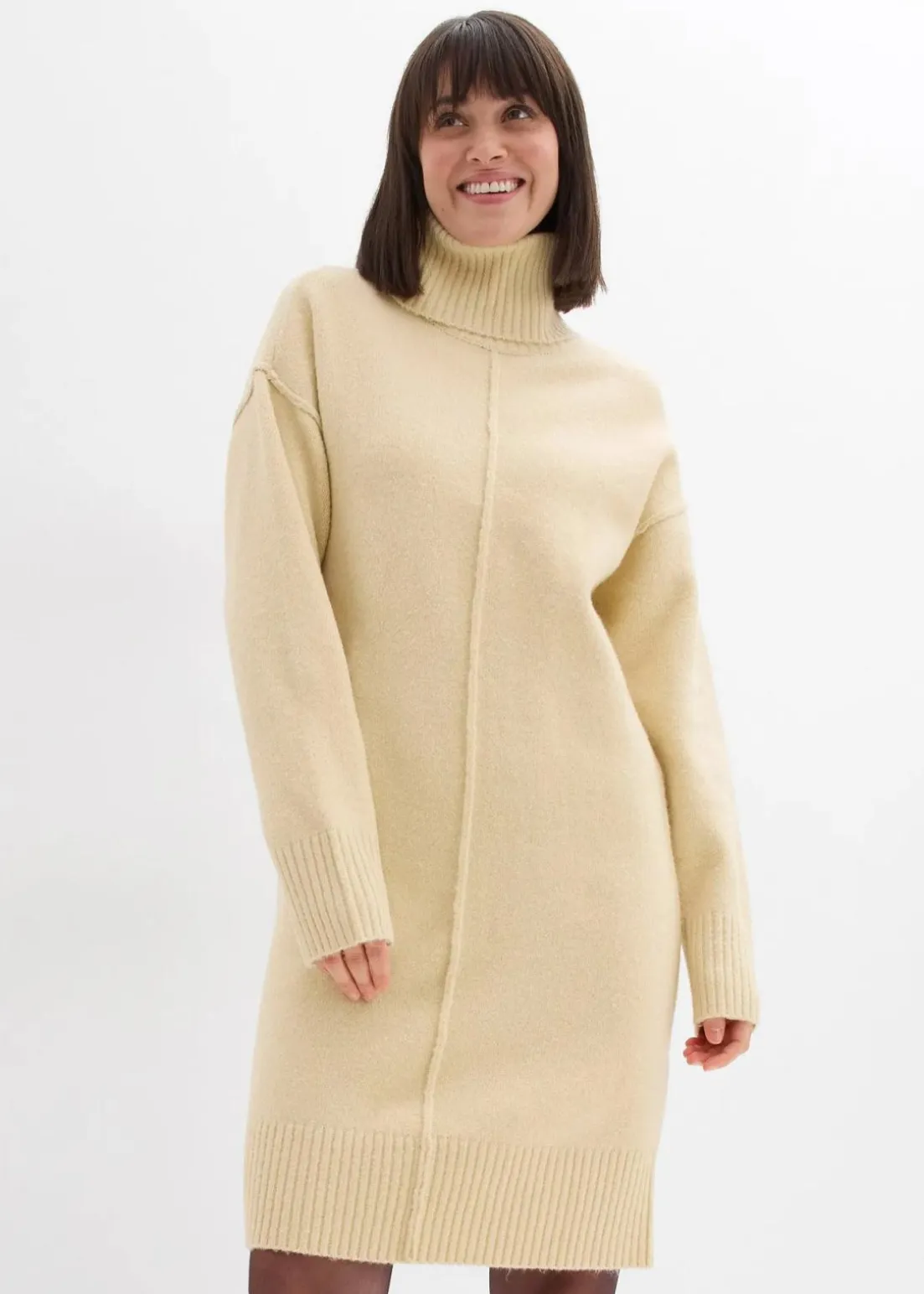 Modisches Strickkleid mit Rollkragen und dekorativer Ziernaht