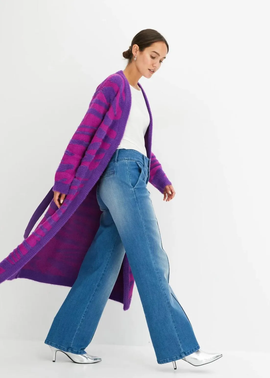 Langer Strickmantel mit modernem Druck