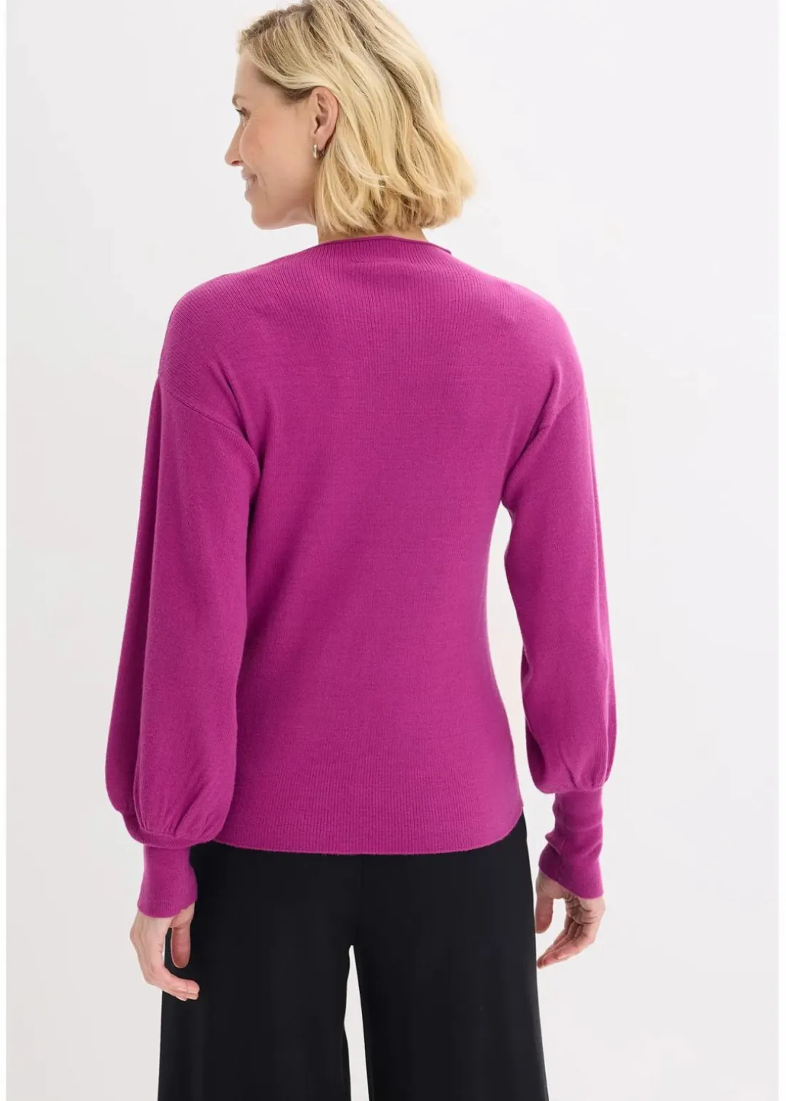 Aparter Strickpullover mit Ballonärmeln und Stehkragen