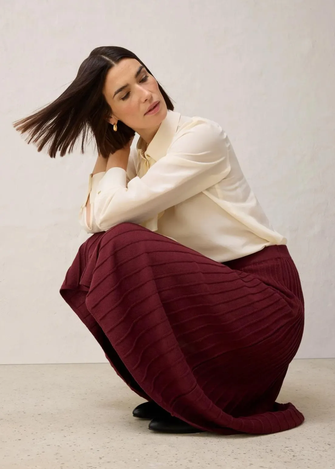 - Passform:figurumspielend, leicht ausgestellt im Saum