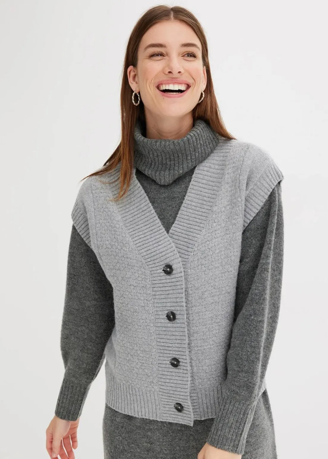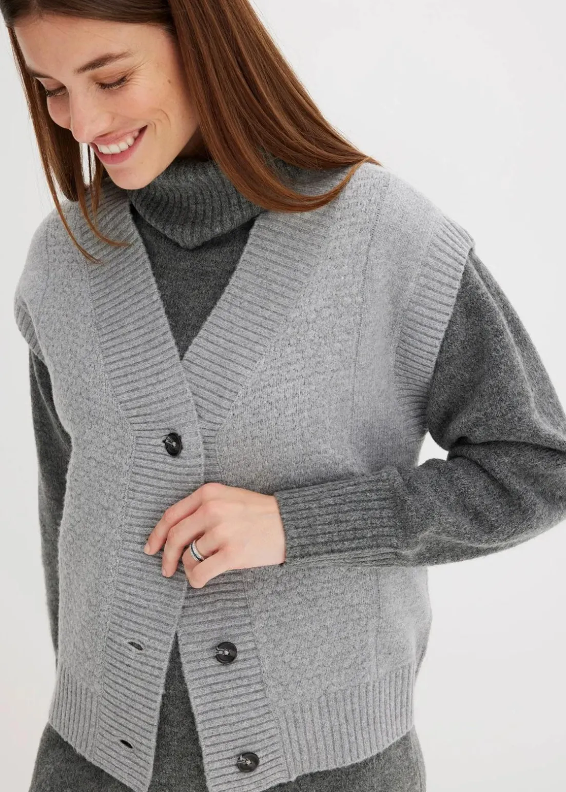 Bequeme Strickweste mit Zopfmuster und Knopfleiste