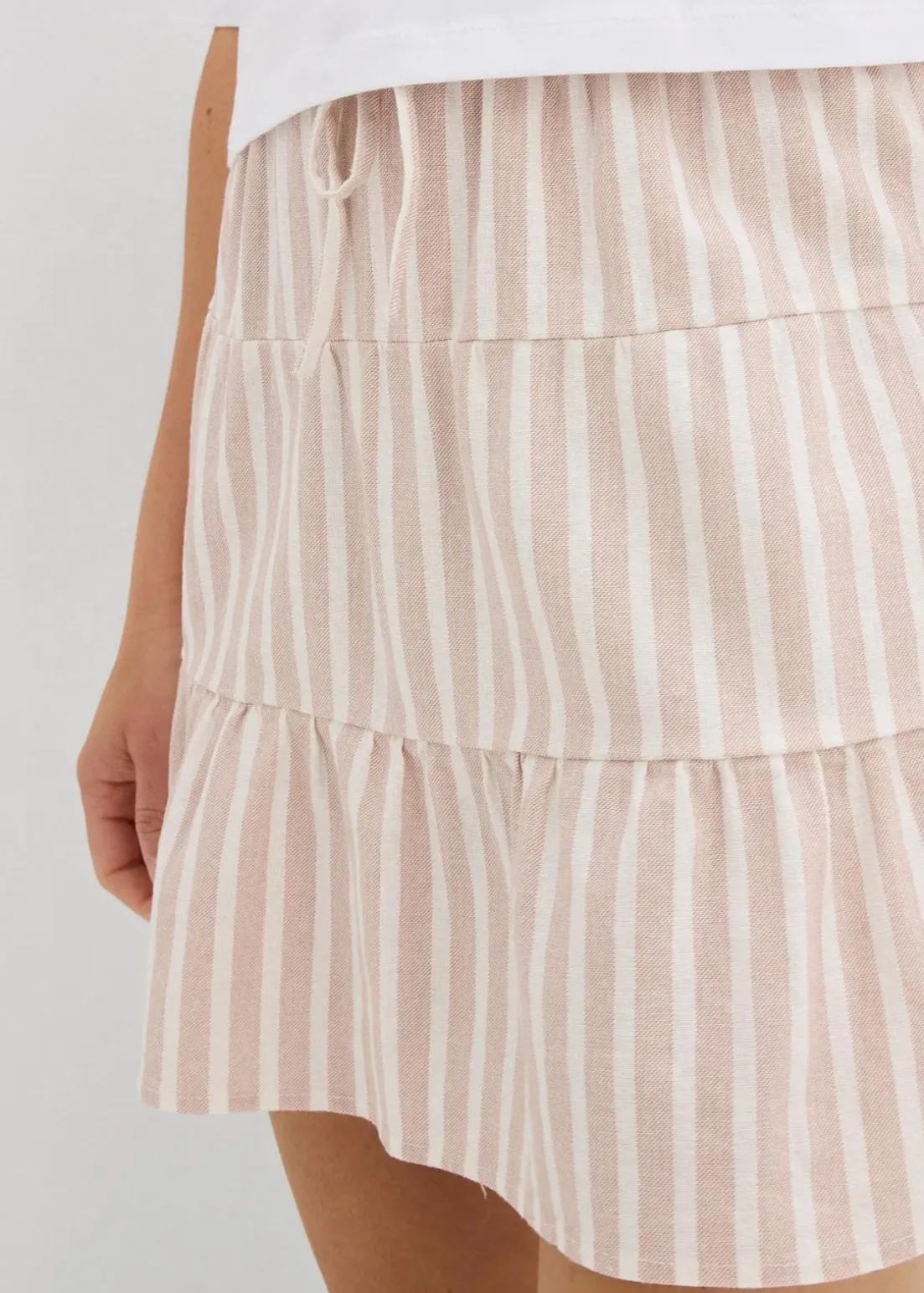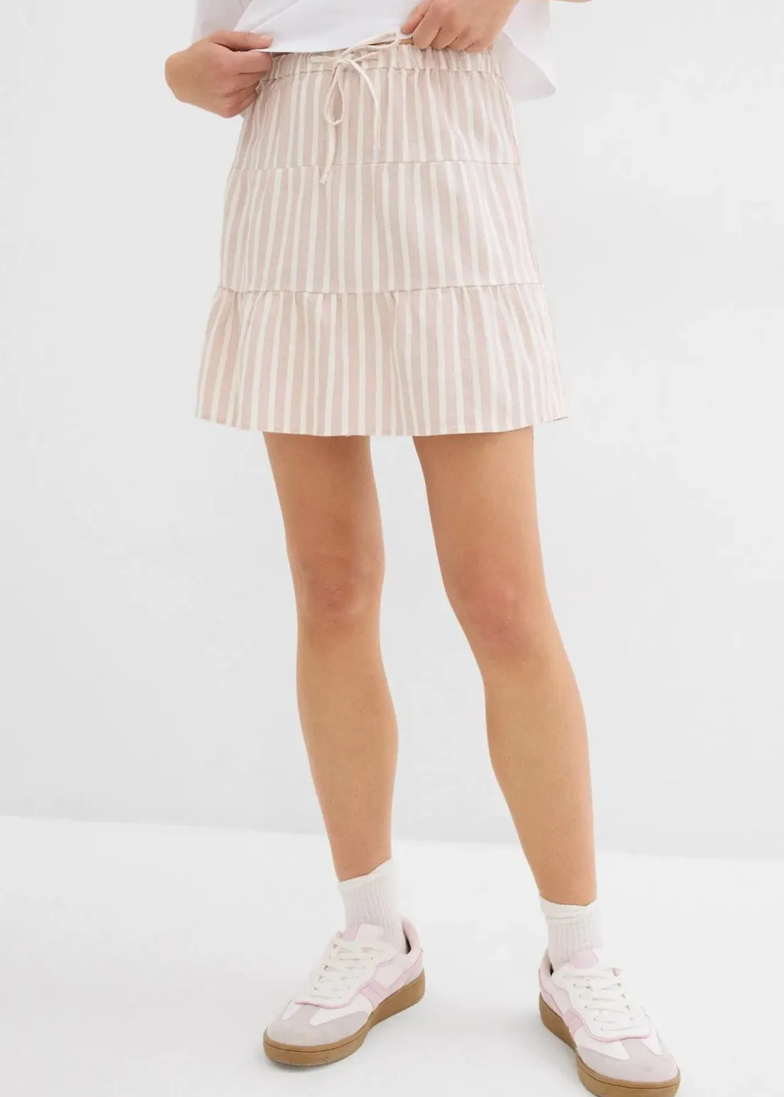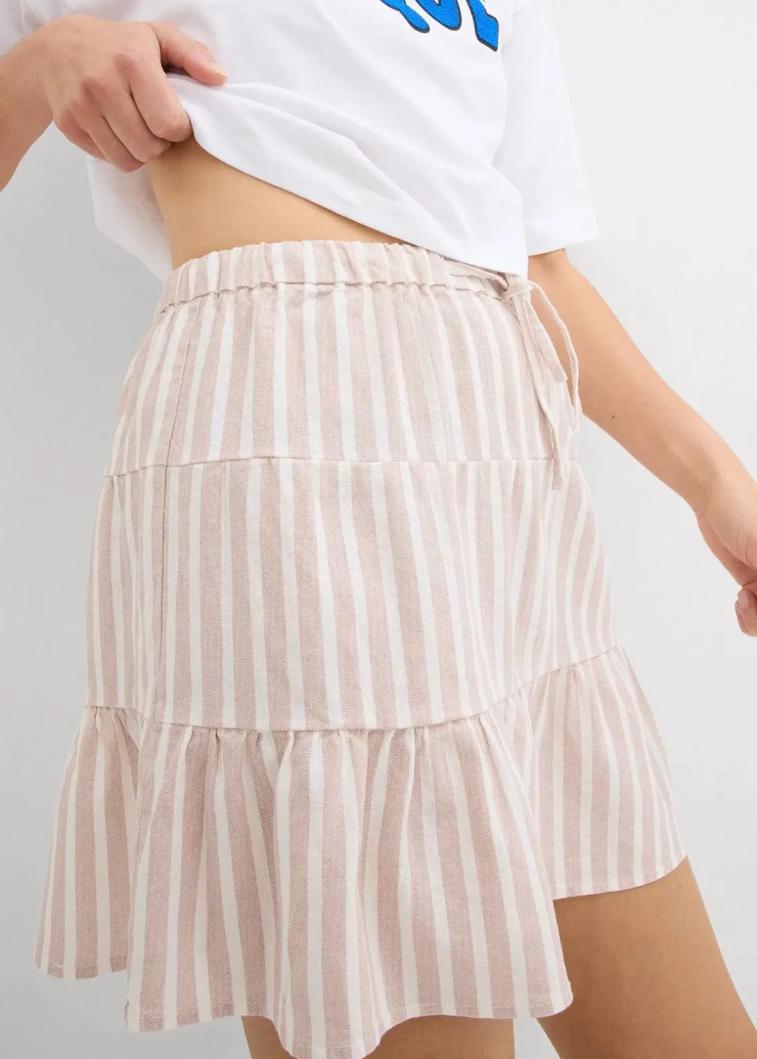Kurzer Stufenrock aus Leinen Mix mit Bindedetail