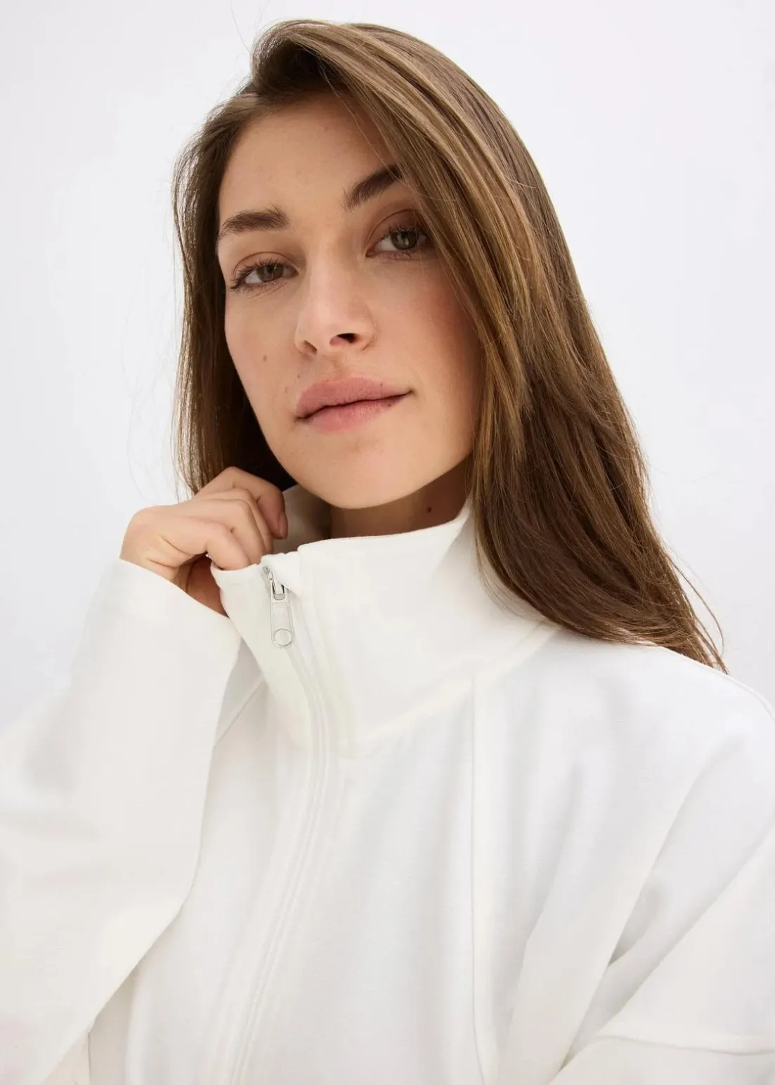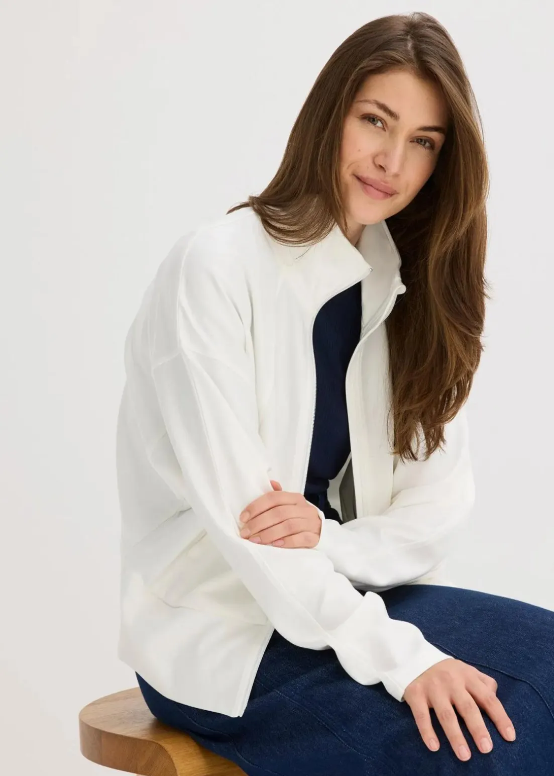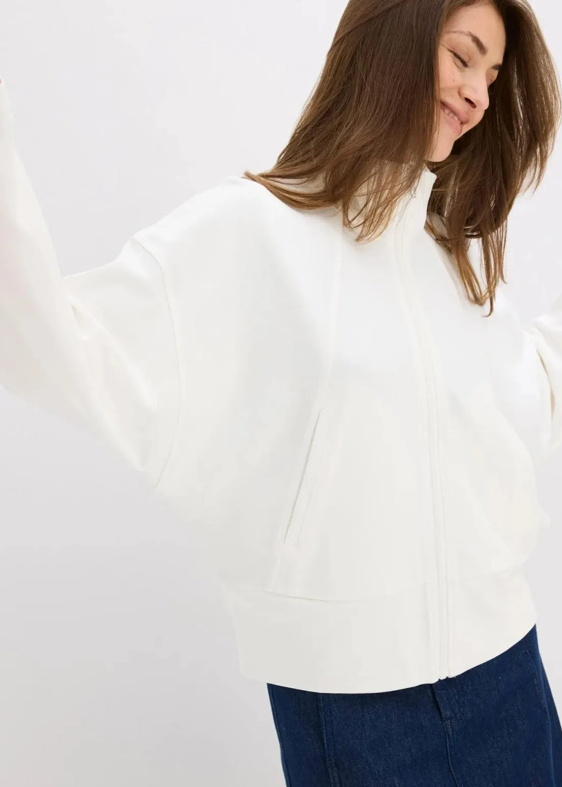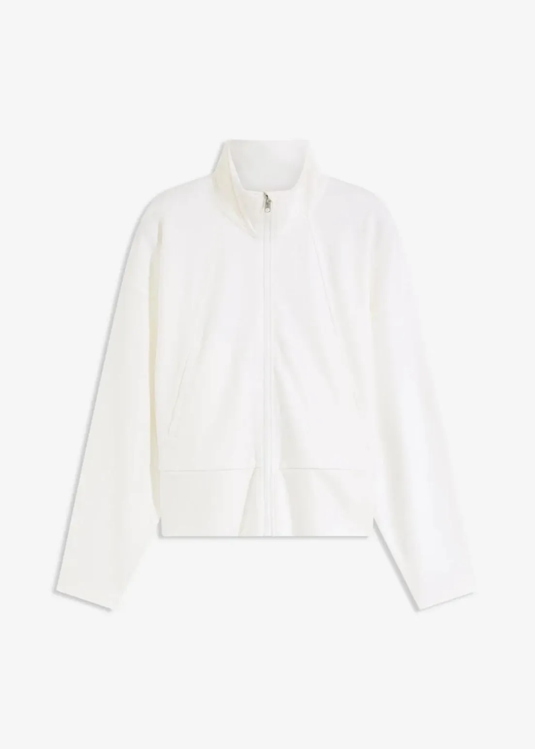 Sweatjacke mit Reißverschluss, Stehkragen und schrägen Leistentaschen vorne