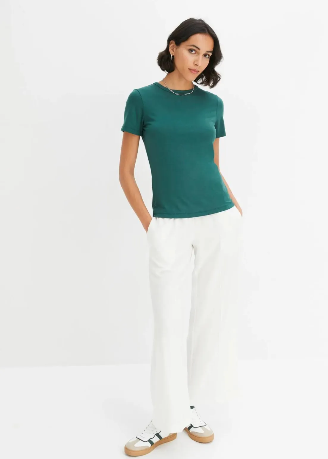 T-Shirt mit Rundhalsausschnitt aus fließendem Material
