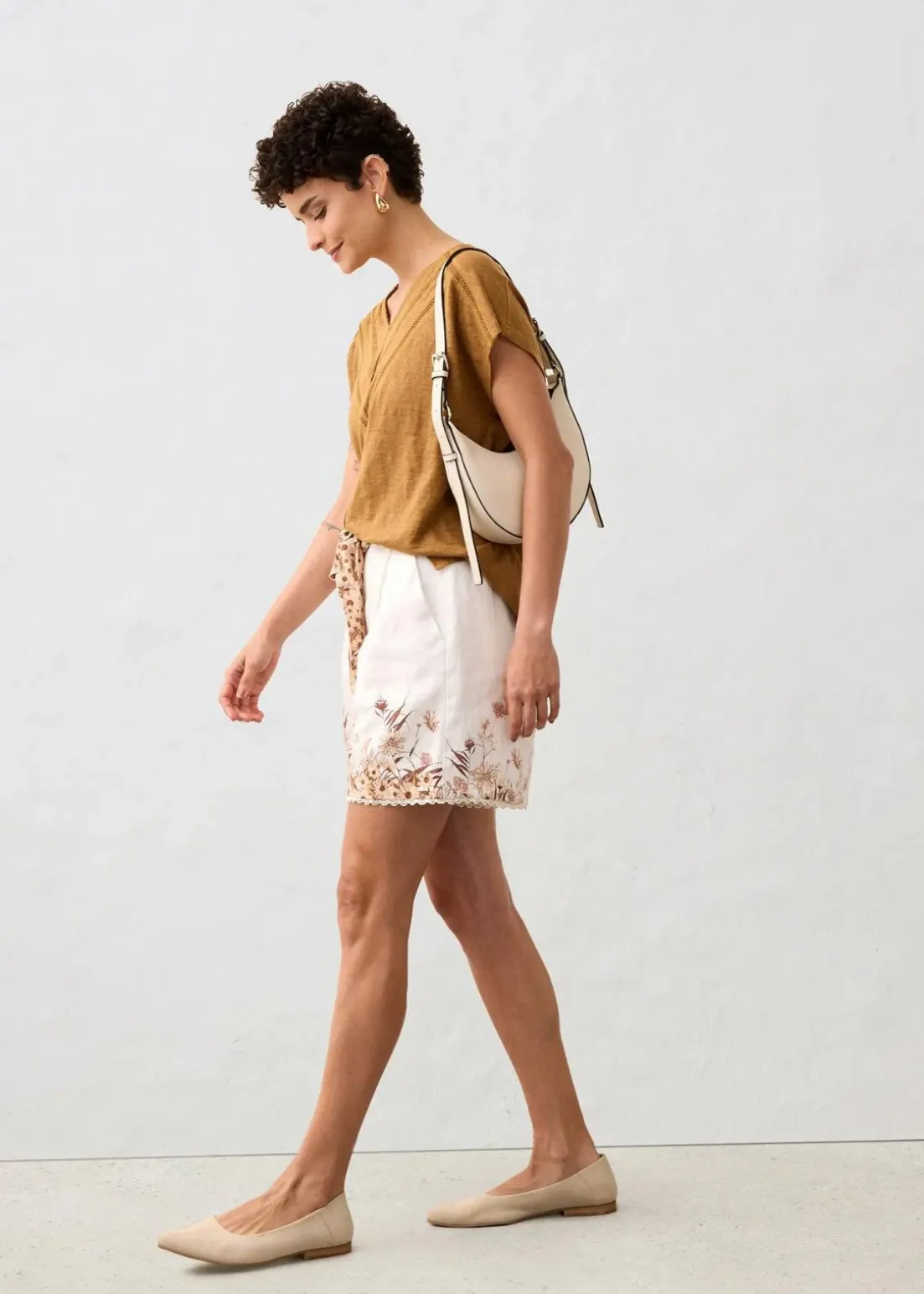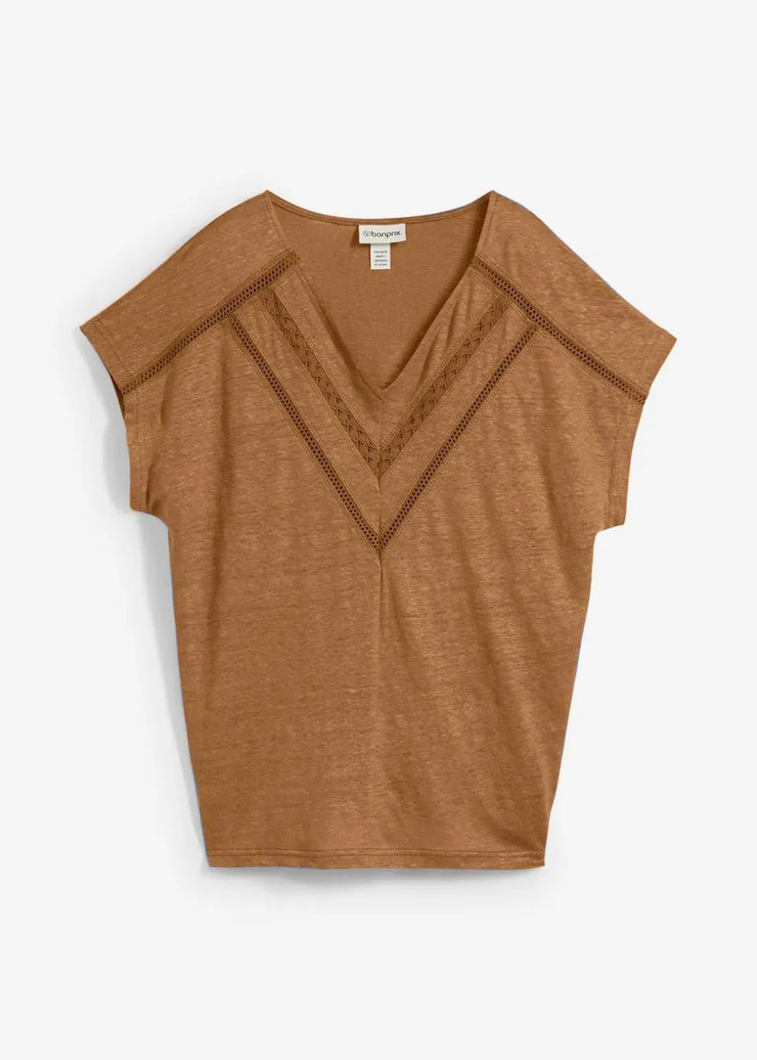 sommerliches Premium Shirt mit Stickerei und 100% Leinen