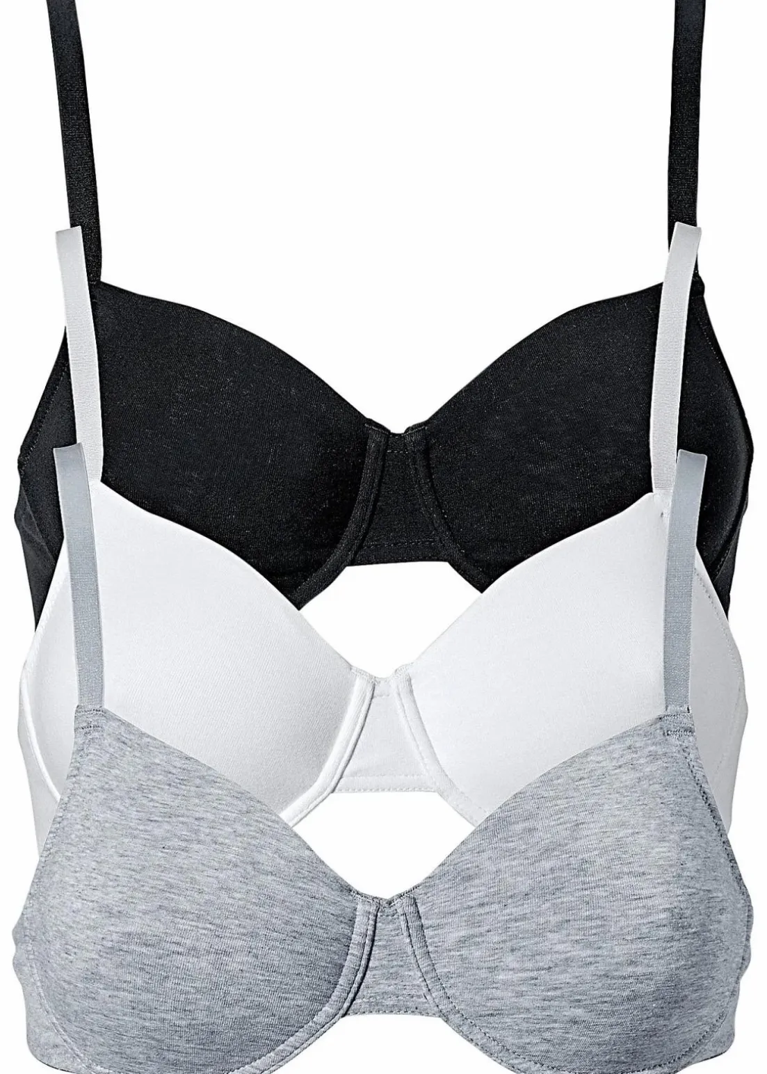 Von diesem T-Shirt-BH aus Bio-Baumwolle im 3er-Pack aus der Kollektion von bpc kann man nicht genug haben. Ohne Polster, aber mit nahtlos vorgeformten Cups garantiert der Bügel-BH einen perfekten und bequemen Sitz.Durch die nahtlose Optik zeichnet sich auch unter figurbetonten Tops oder Shirts nichts ab. Der BH ist im 3er-Pack jeweils in den Farbmodellen weiß, schwarz und graumelange erhältlich.