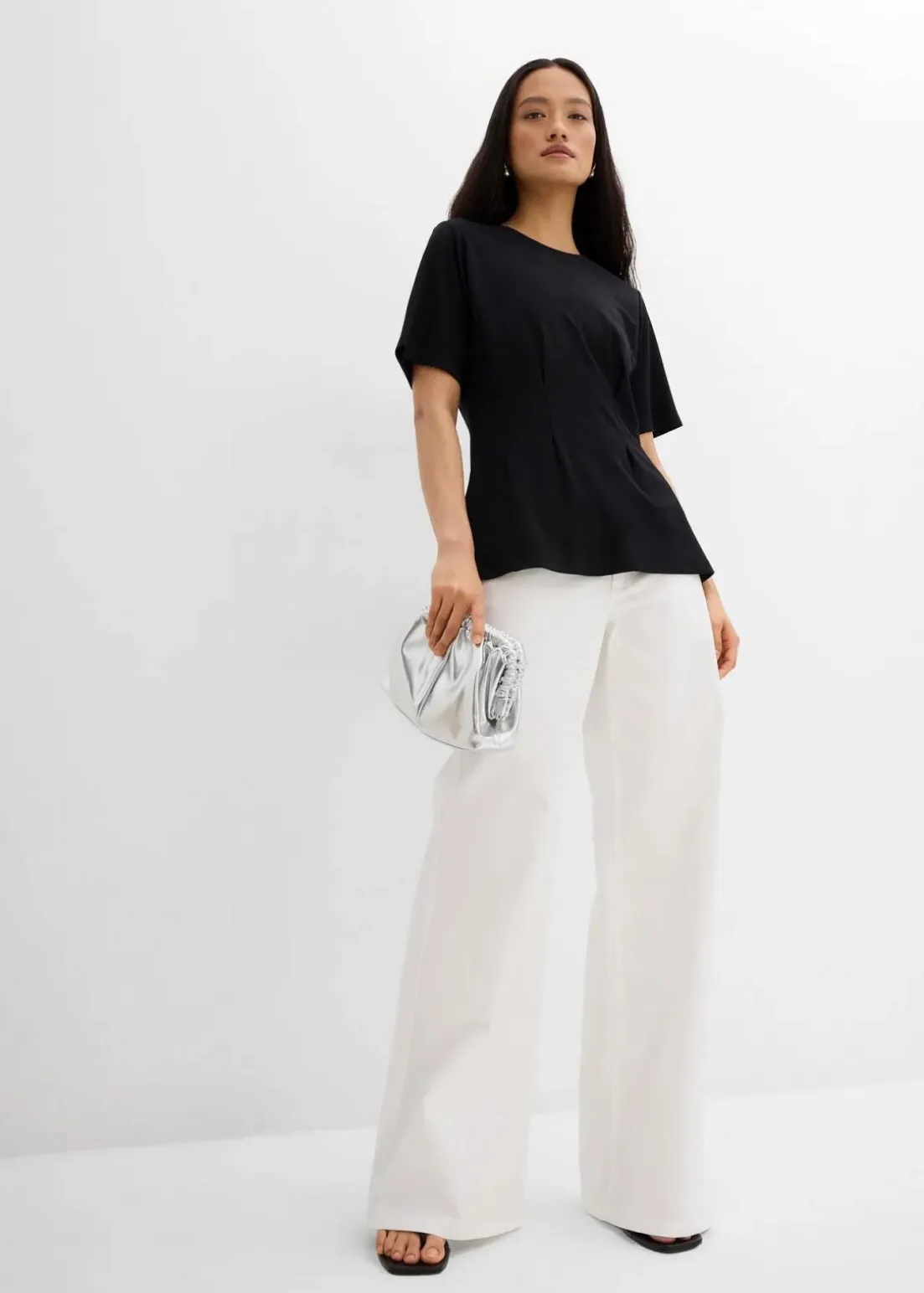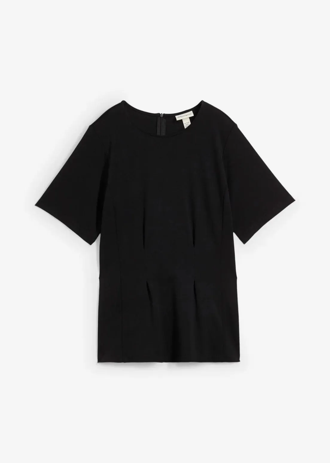 Figurbetontes Shirt mit Saumabschluss mit Schößchen sowie verdecktem Reißverschluss hinten.