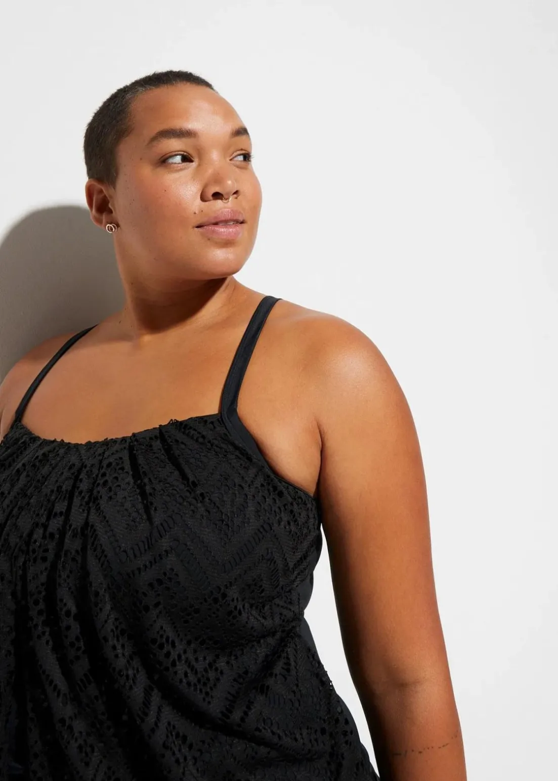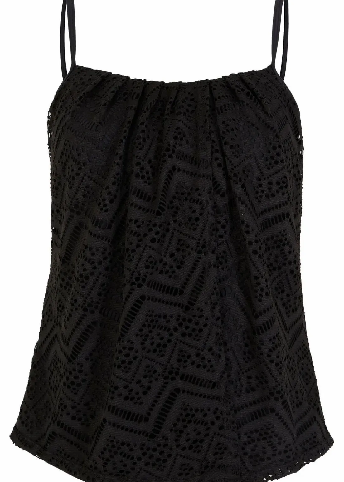 Verstellbare Träger. Mit Brustfutter und Unterbrustgummi. Integrierte Softcups. Elastische Spitze.