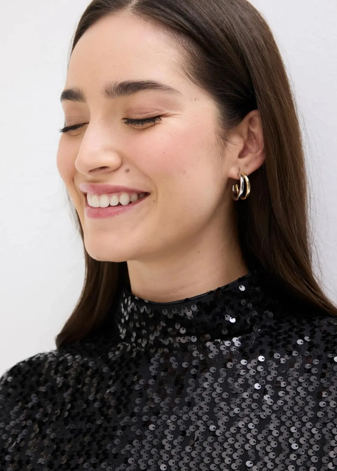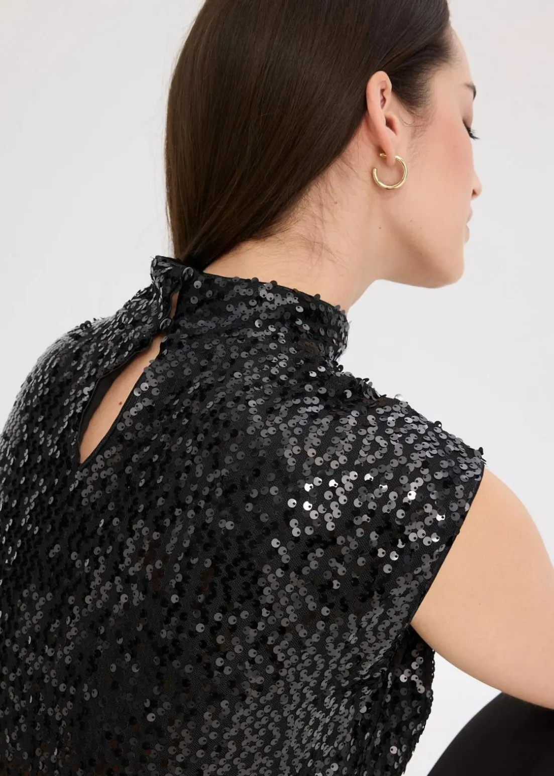 Festlich und modern: Pailletten-Top mit Kragen und trendigen Schultern