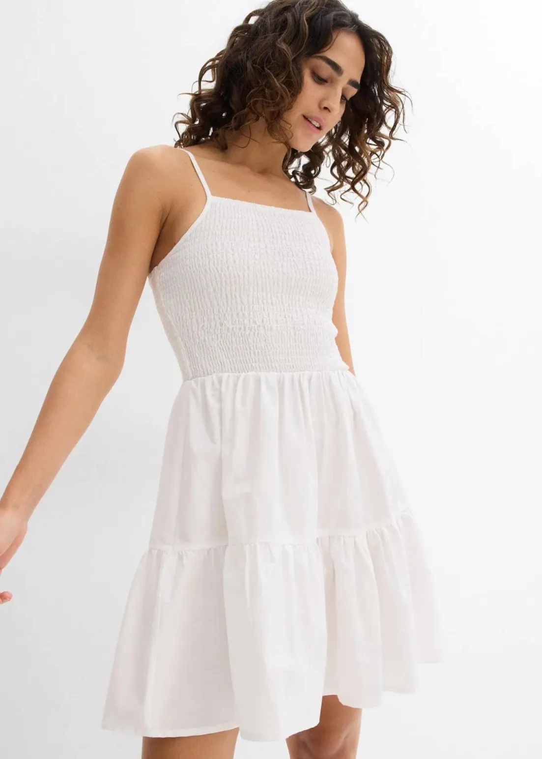 Trägerkleid aus reiner Bio-Baumwolle mit Volants und Smok