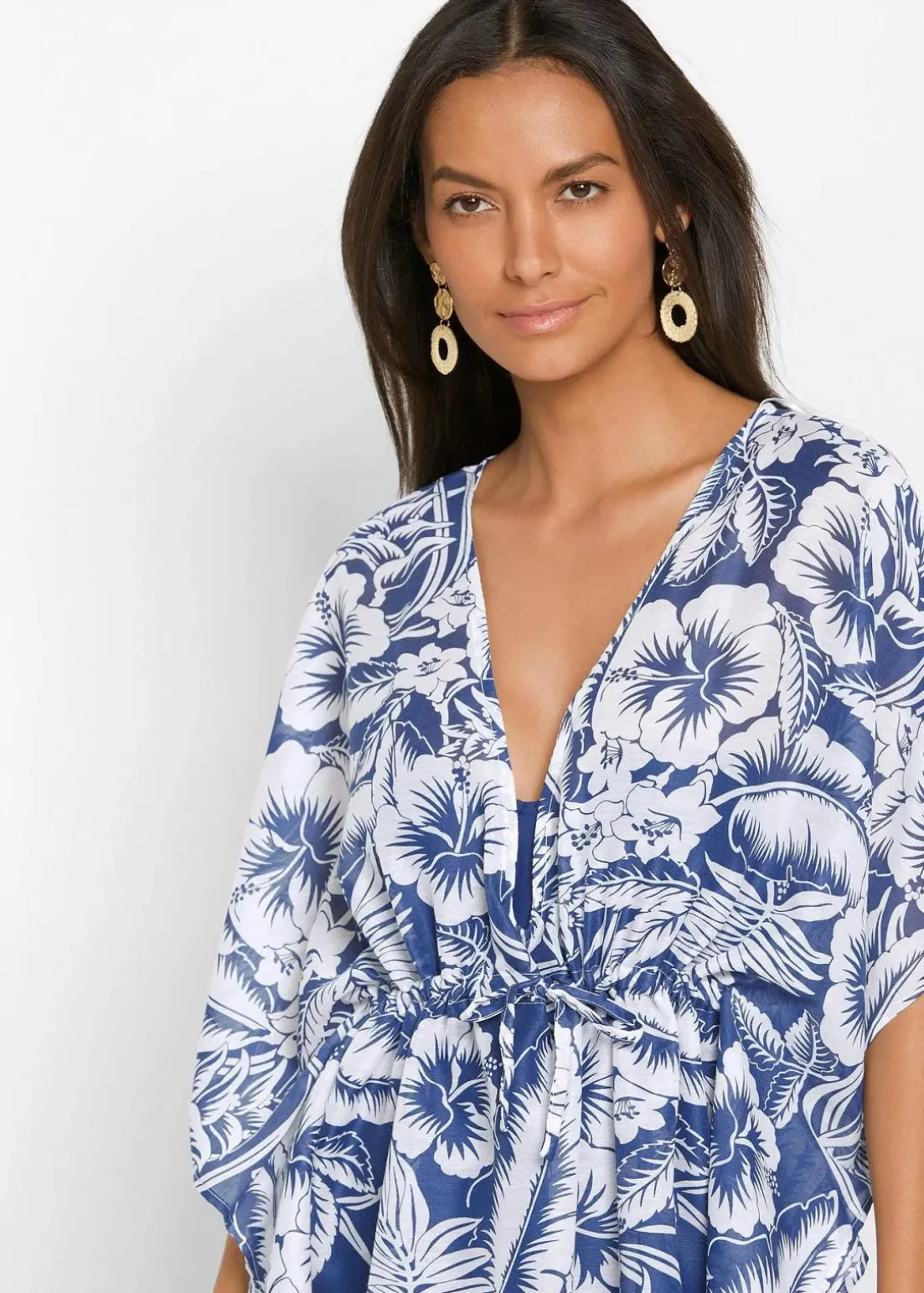 Schöne Strandtunika mit V-Ausschnitt und Bindband