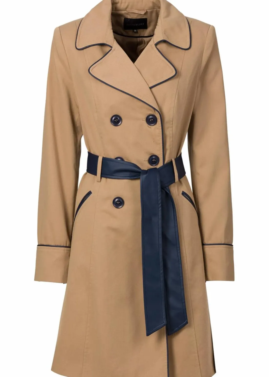 Modischer Trenchcoat mit zeitlosen Farbkontrasten.