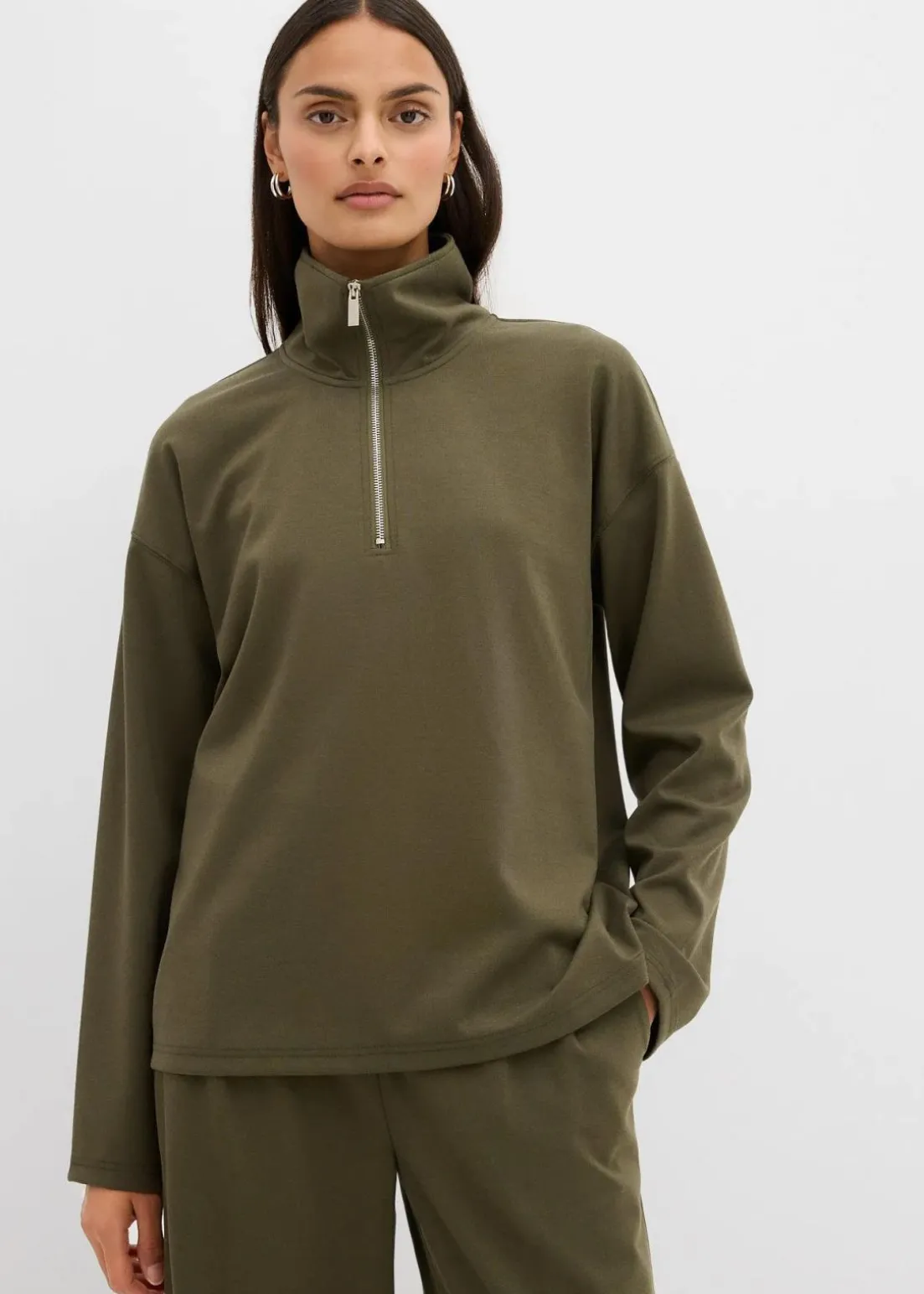 Troyer in lockerer Passform mit Reißverschluss und überschnittenen Schultern