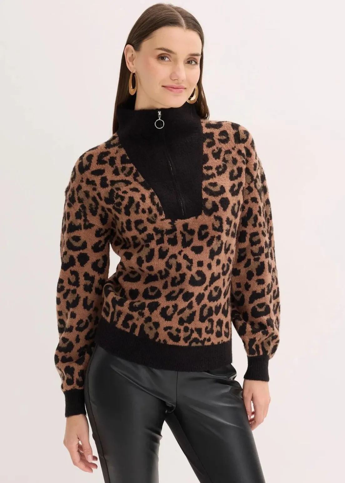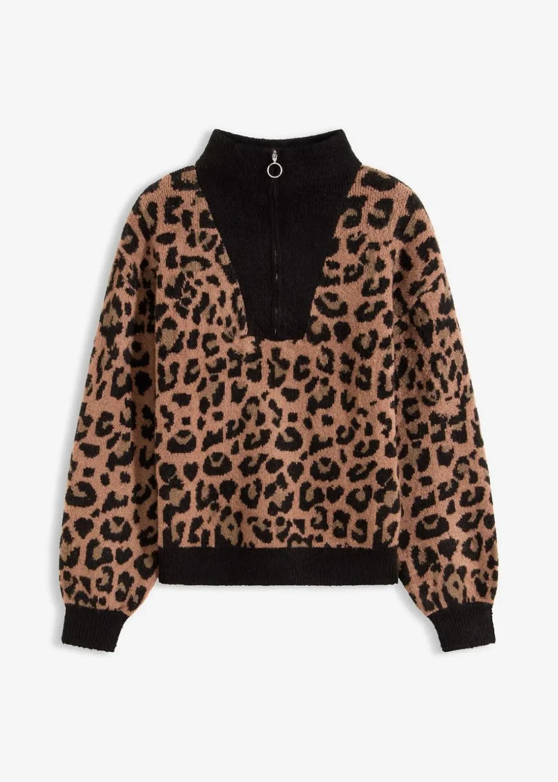 weicher Troyer-Pullover mit Reißverschluss-Detail vorne am Kragen und modischem Jacquard-Muster