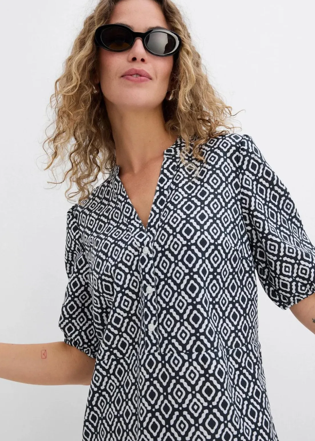 mit Henley-Kragen und Ethnodruck