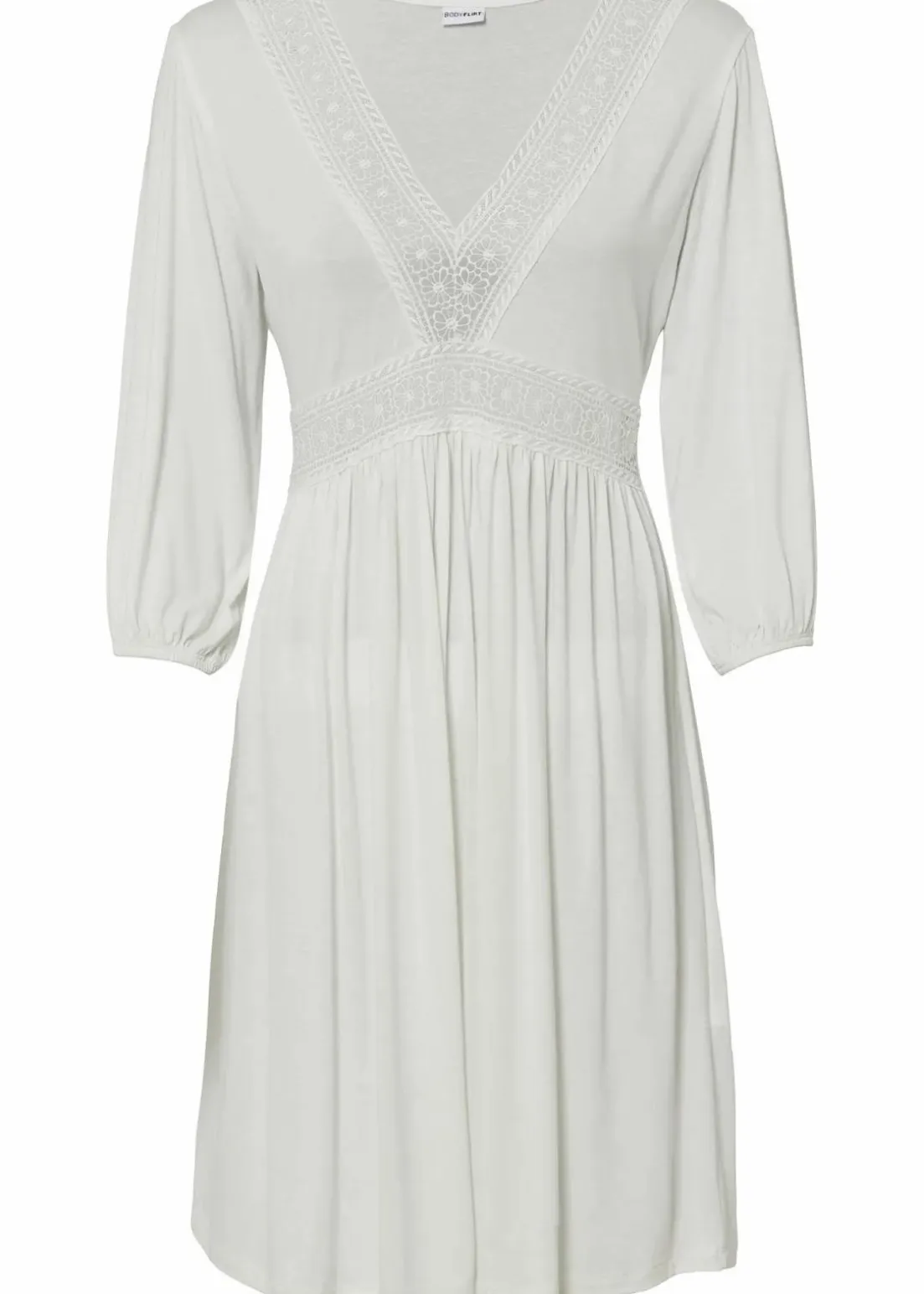 modisches Kleid mit dekorativer Spitze am Ausschnitt und vorne an der Taille.