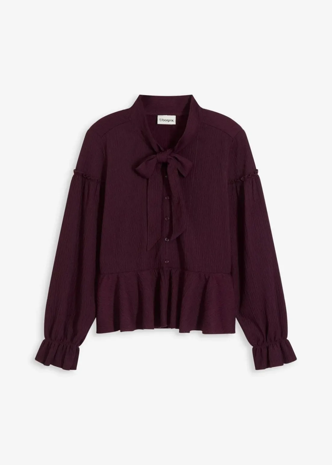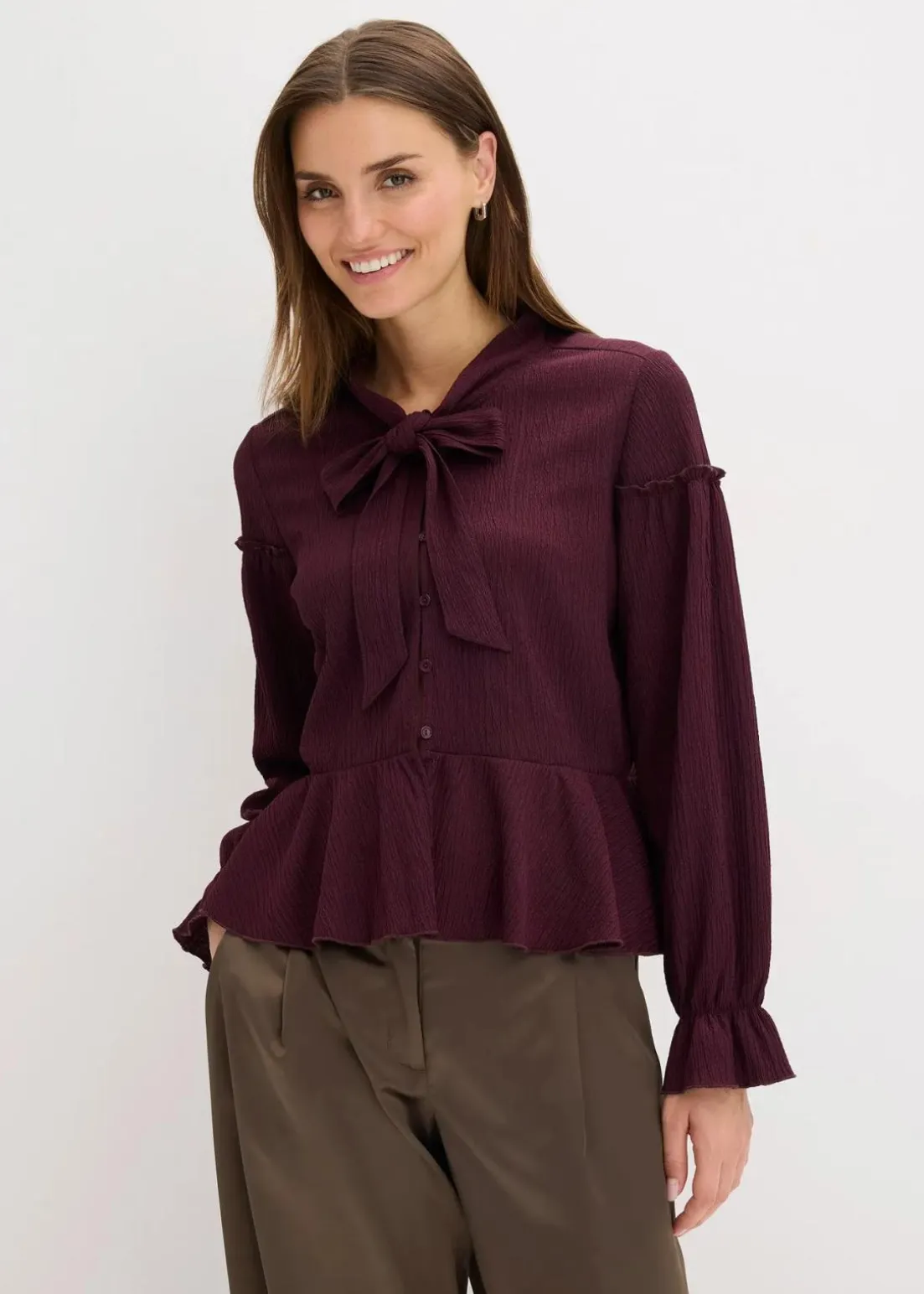 feminines Tunika-Shirt aus strukturiertem Jersey mit Schluppenkragen und Knopfleiste vorne