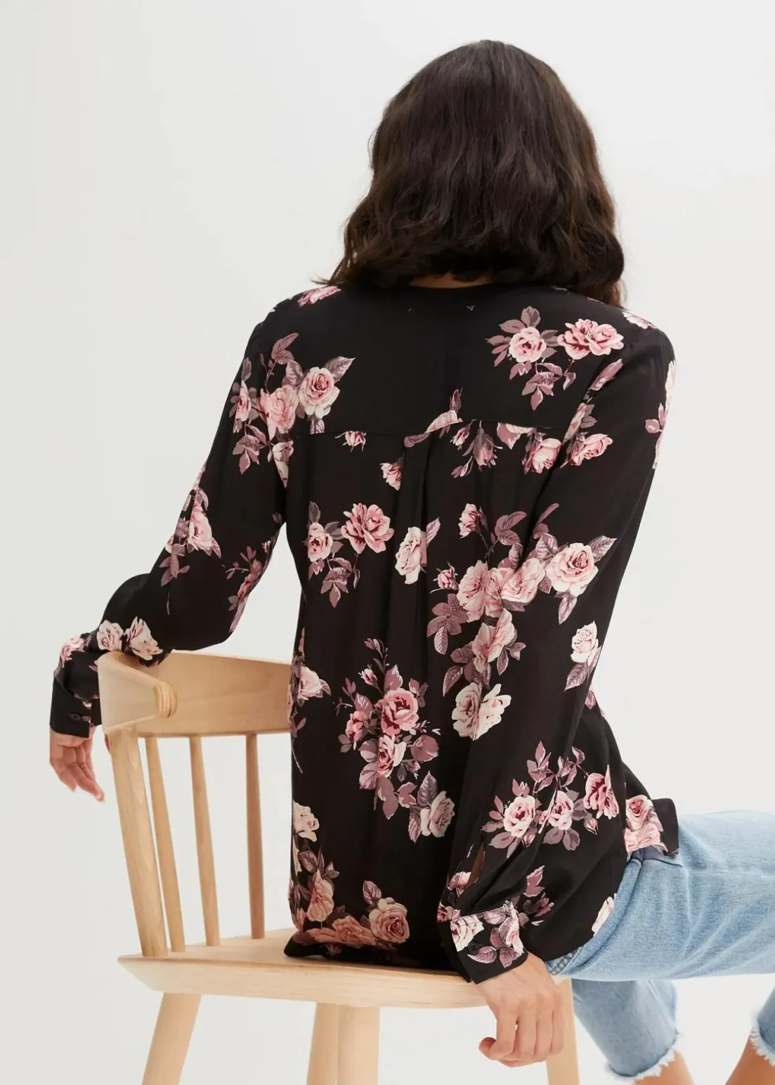 Moderne Bluse mit Seitenschlitzen und abgerundetem Saum