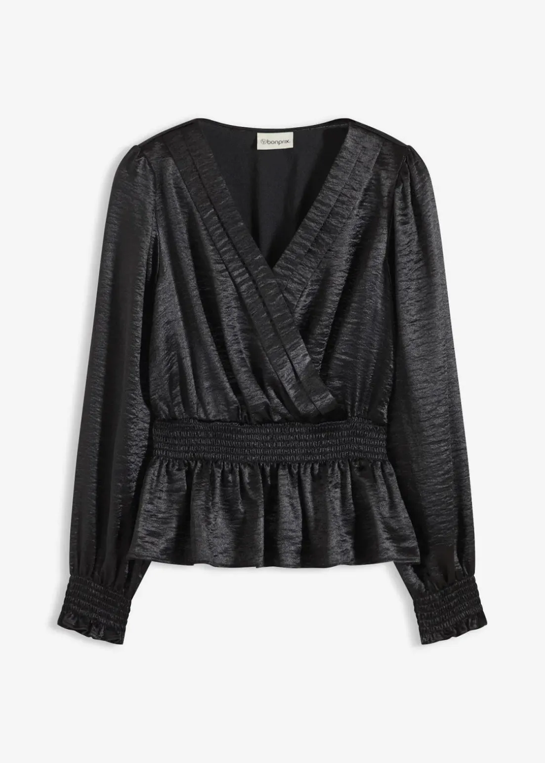 Tolle Bluse für Party und Büro aus fließendem Satin mit Ballon-Ärmlen und gesmokter Taille