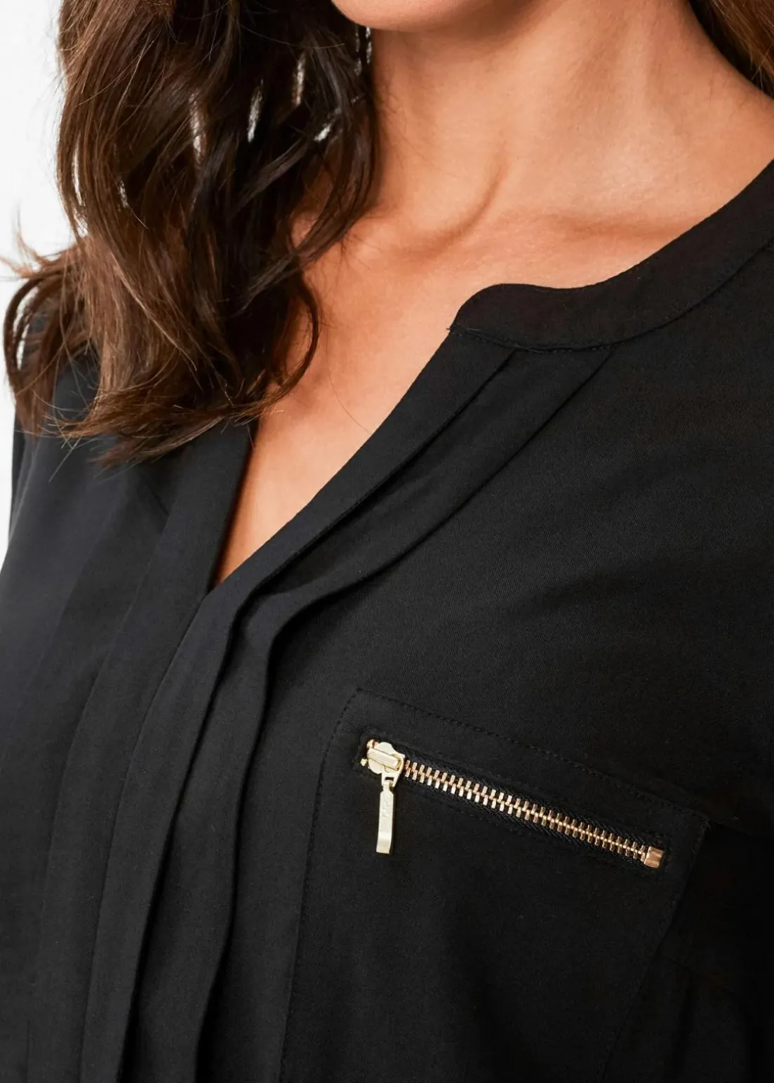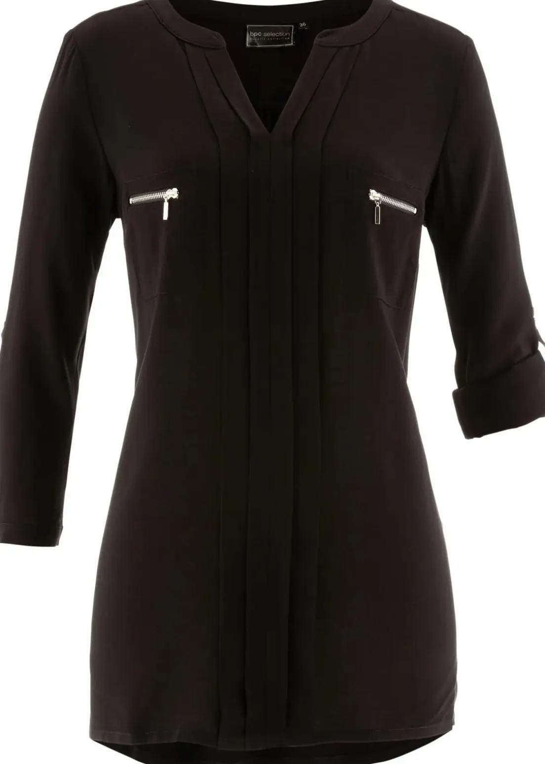 Ansprechende Tunikabluse mit eingelegten Falten und dekorativen Brusttaschen