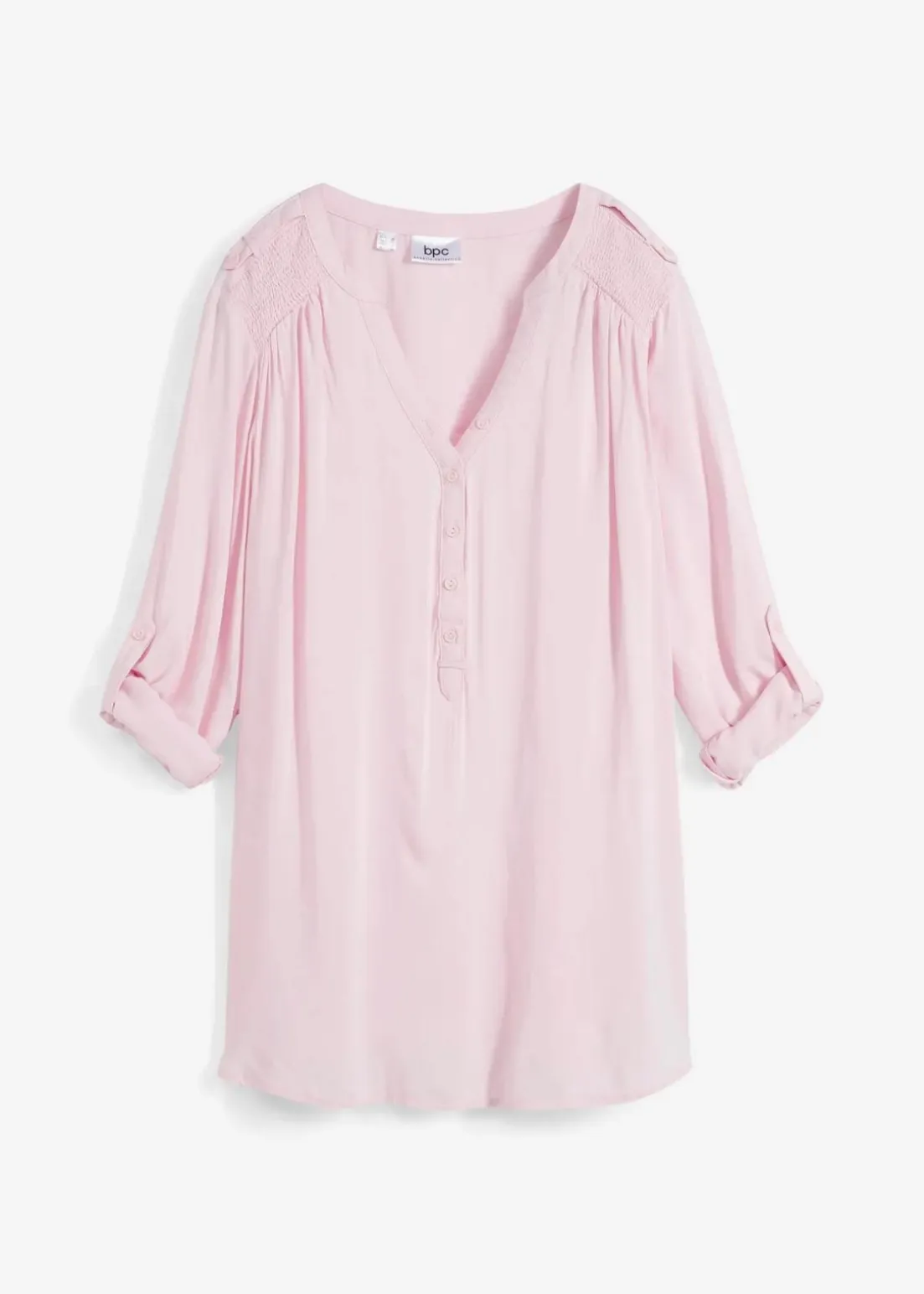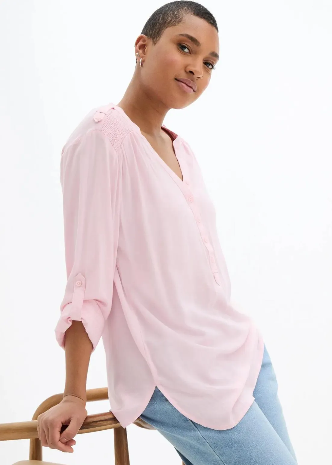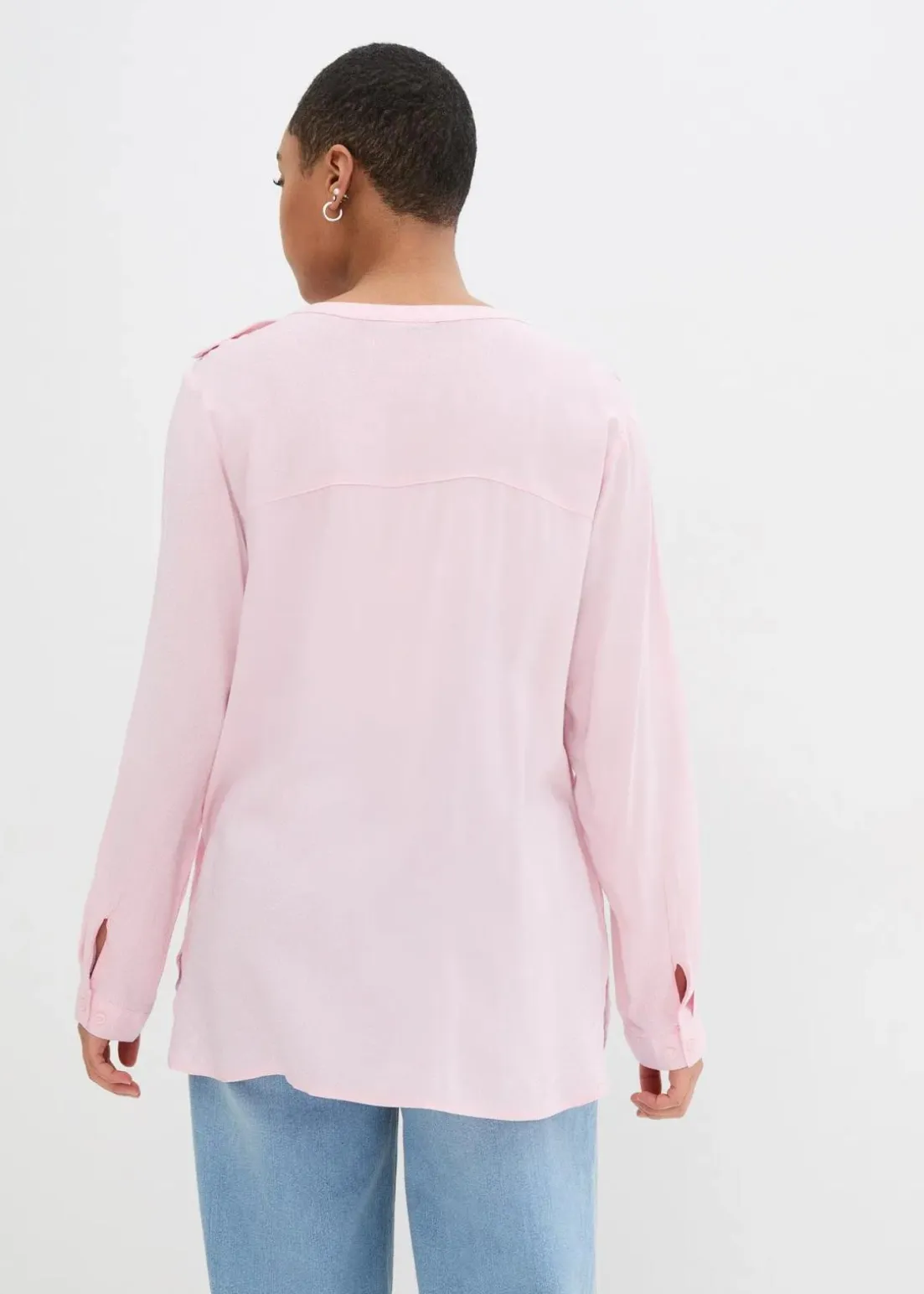 Blusentunika mit langen Ärmeln, Rundsaum und Knopfleiste