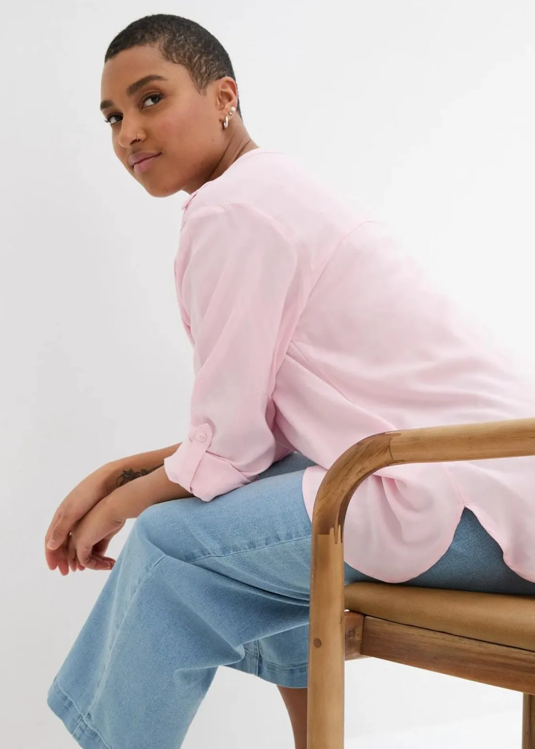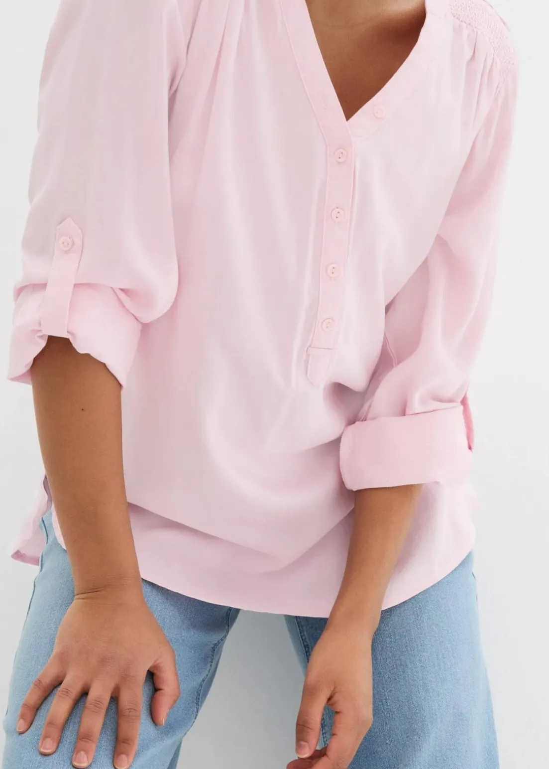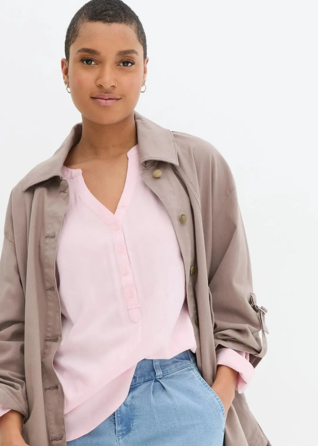 Blusentunika mit langen Ärmeln, Rundsaum und Knopfleiste