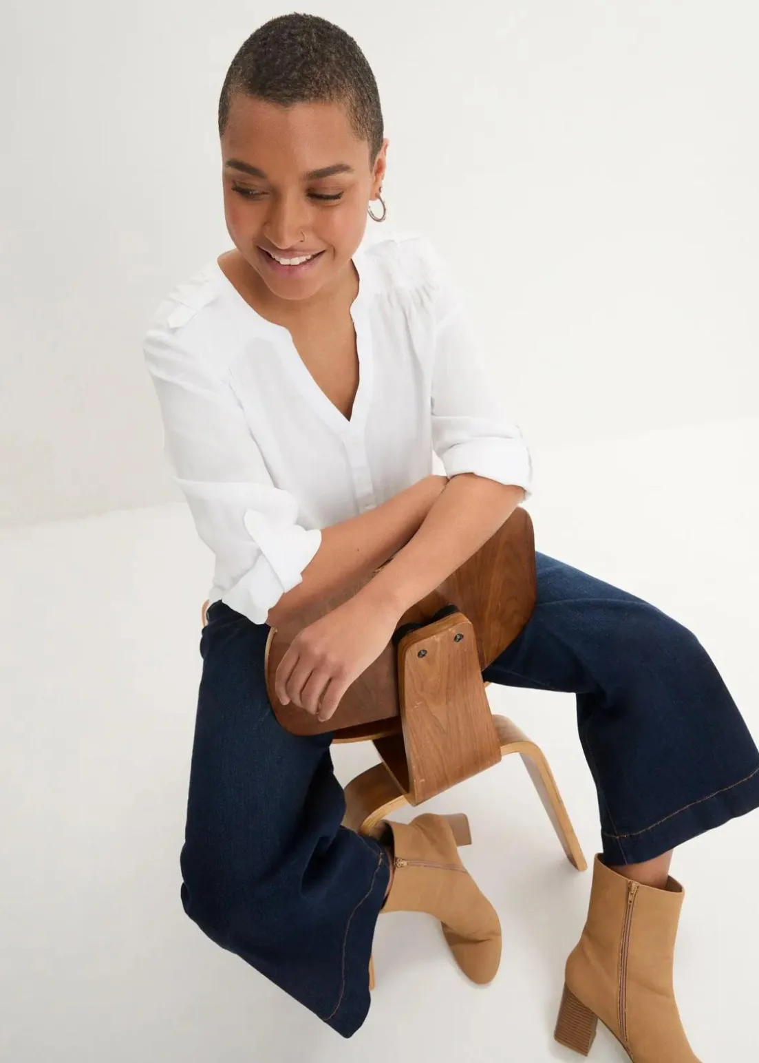 Blusentunika mit langen Ärmeln, Rundsaum und Knopfleiste