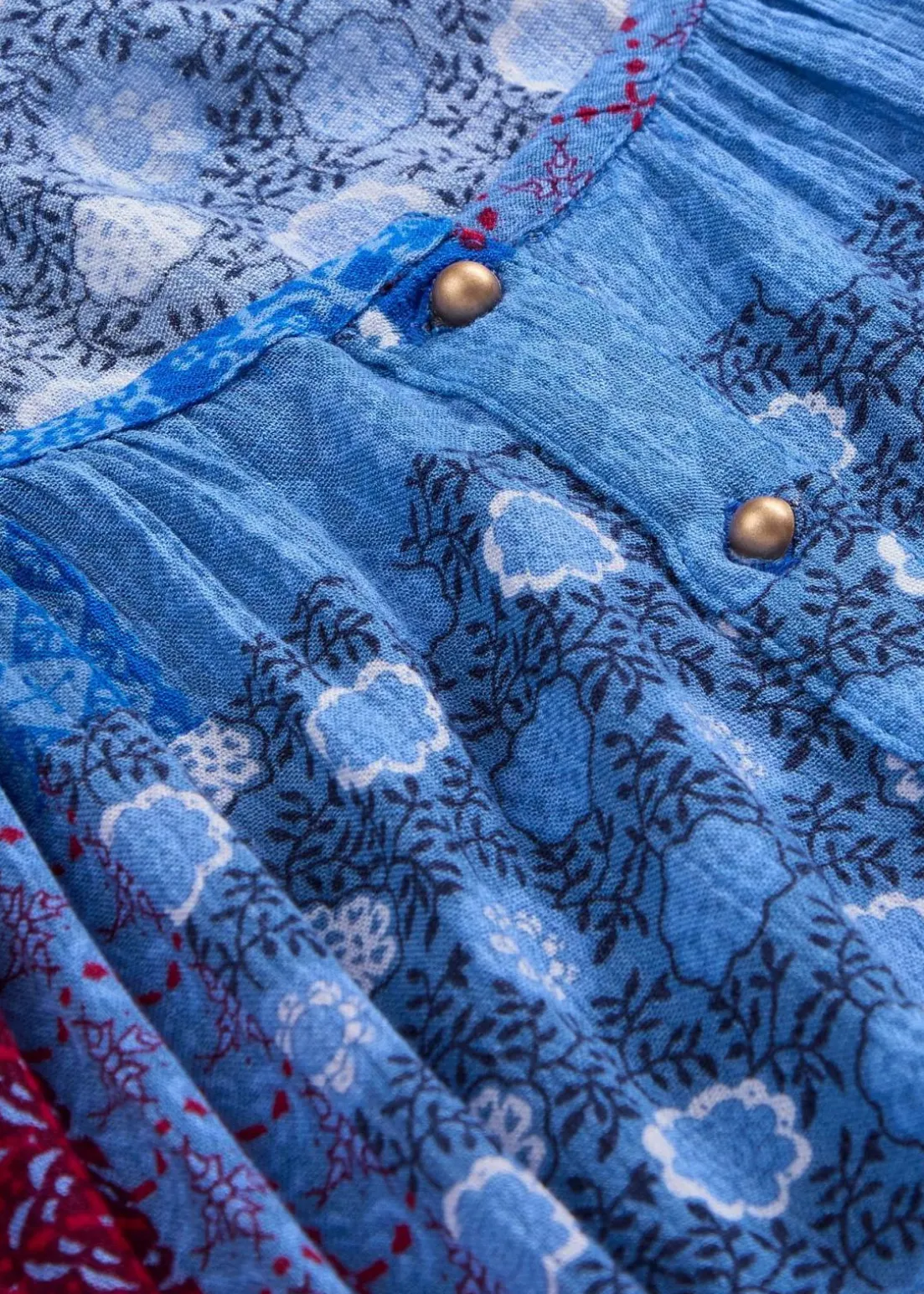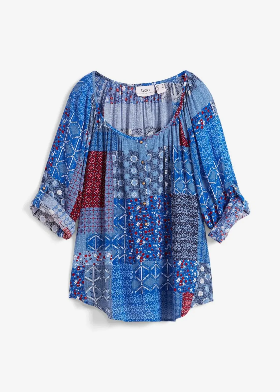 Leicht fallende Langarm-Tunikabluse mit Crincle-Effekt. Durch das besondere Druckverfahren ist jedes Teil ein Unikat