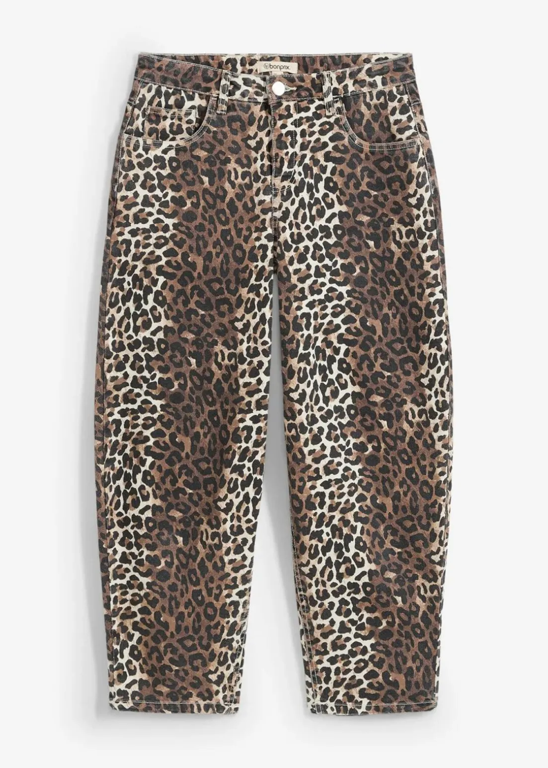 Weite Barrel-Jeans mit Leopardenmuster, Mid Waist