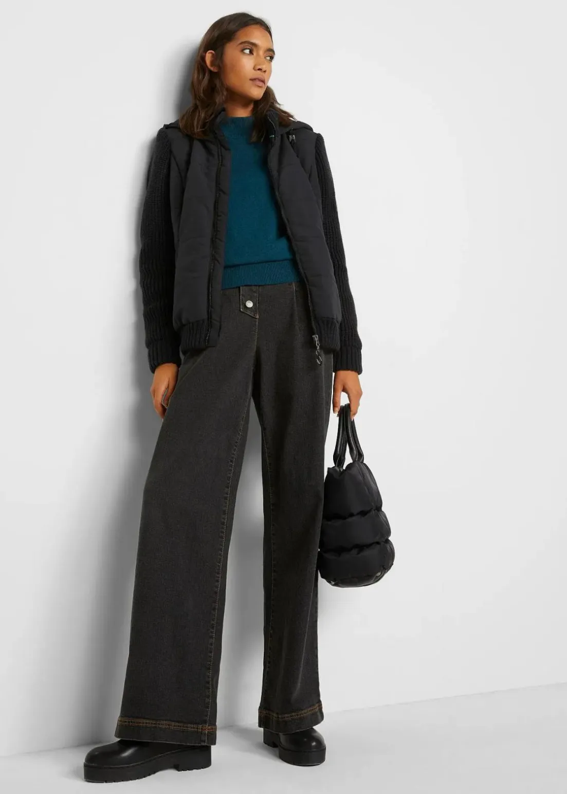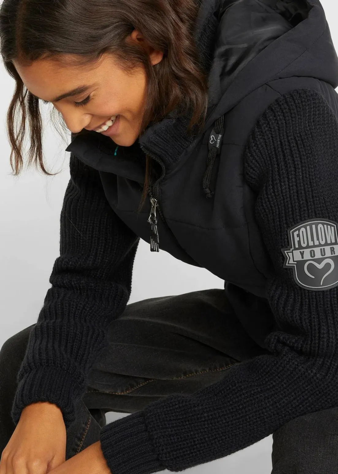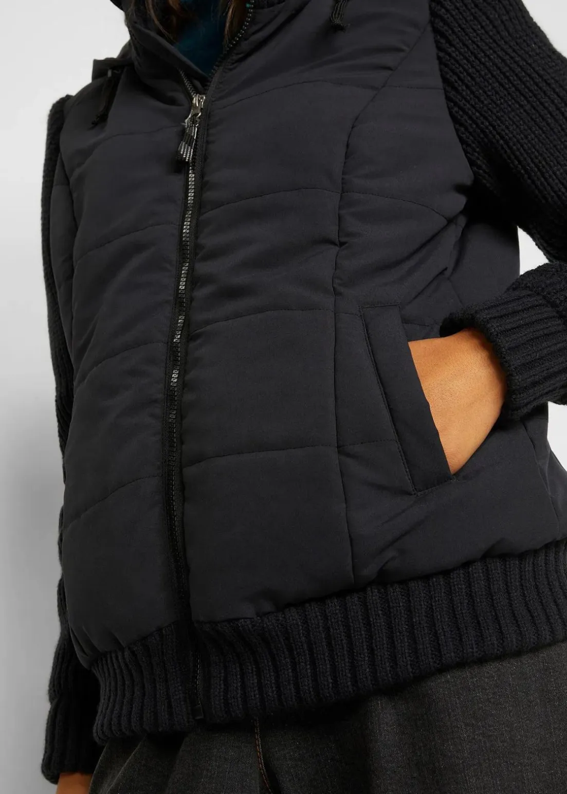 Jacke in Westen-Optik mit Strickärmeln und Kapuze