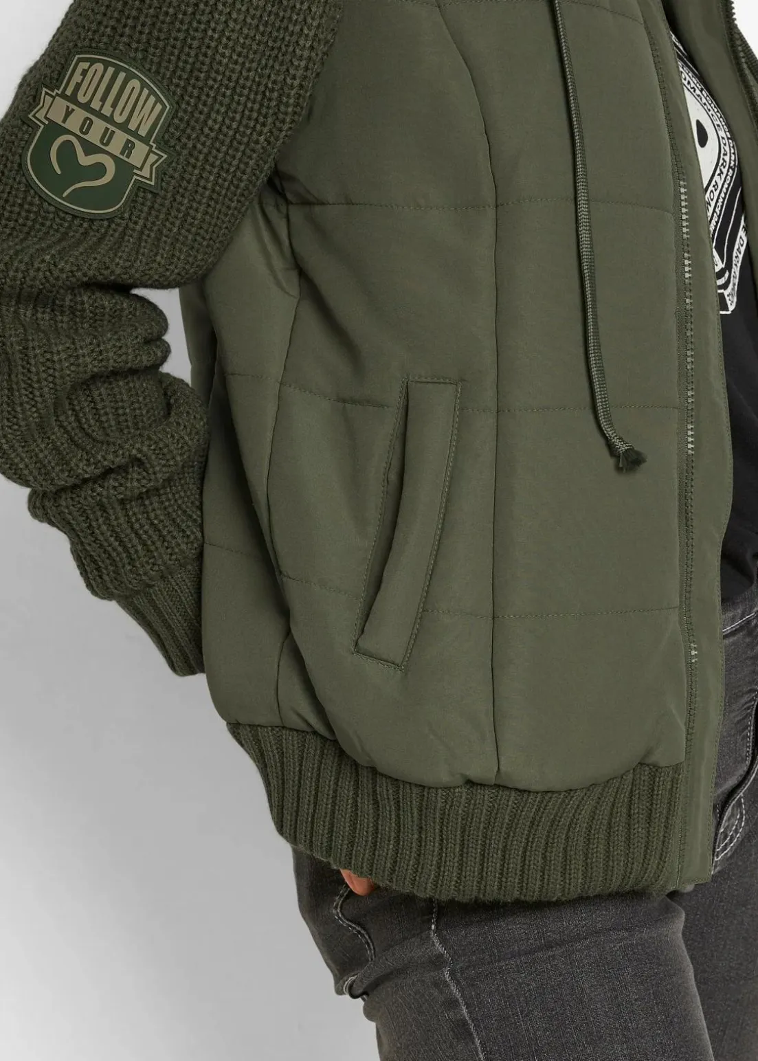 Jacke in Westen-Optik mit Strickärmeln und Kapuze