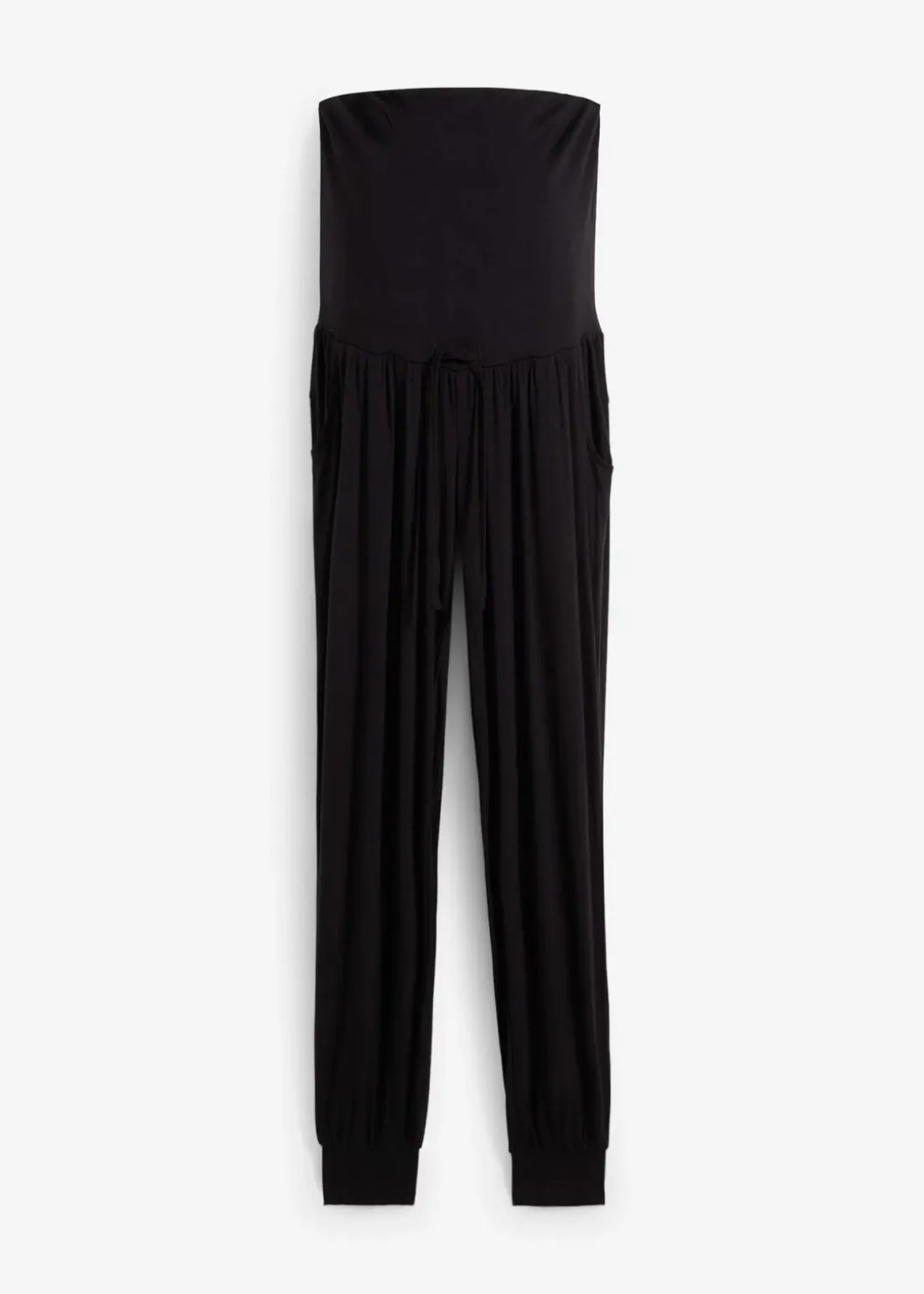 Hose aus zertifizierter Viskose mit geradem Bein und elastischem Saum. Der breite Umschlagbund sorgt für eine bequeme Passform während und nach der Schwangerschaft.