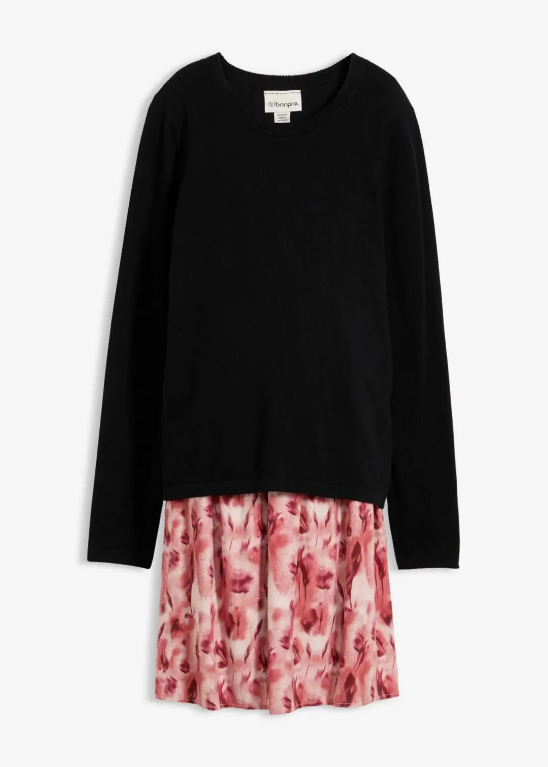 Dieses Umstands- und Stillkleid kombiniert einen gemütlichen Strickpullover mit einem weich fallenden Rock aus Viskose. Der Rundhalsausschnitt und die langen Ärmel sorgen für einen klassischen Look, während die Stillfunktion mit dezentem Einsatz den Alltag erleichtert. Der Rock mit Allover-Print und weichem Griff verleiht dem Kleid eine feminine Note. Perfekt für Komfort und Stil während und nach der Schwangerschaft.