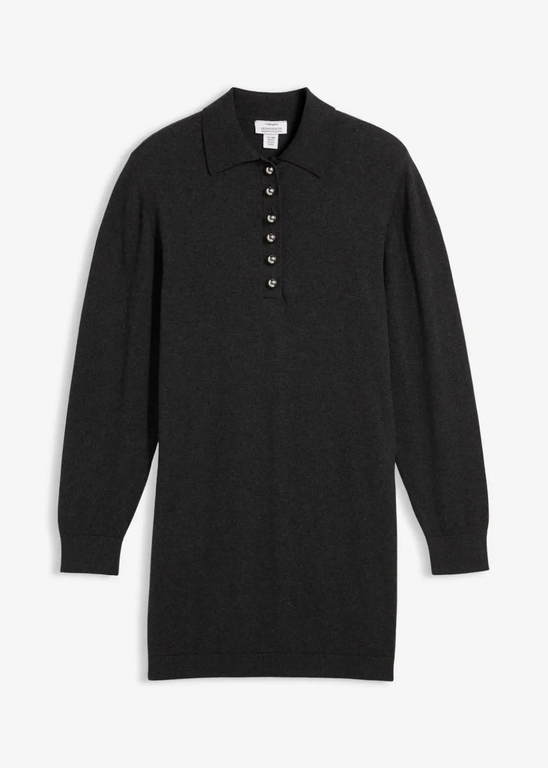 Schwangerschaftskleid aus Feinstrick aus Bio-Baumwolle. Mit modischem Polokragen und extra langer Knopfleiste mit Zierknöpfen, die ein bequemes Stillen sowie ein einfaches An- und Ausziehen ermöglichen. Ausgestattet mit weichen Rippbündchen an Ärmeln und Saum. Perfekt kombinierbar mit blickdichter Strumpfhose, Leggings oder einer schmalen Jeans.