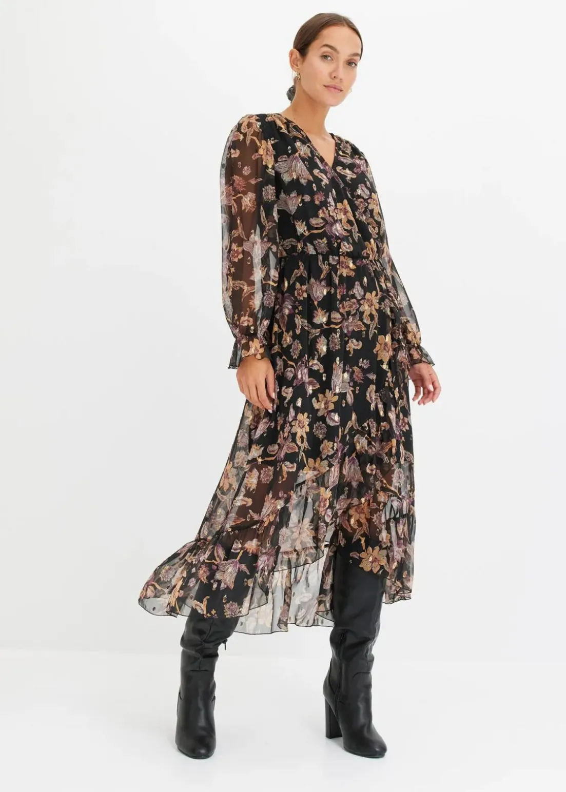 feminines Vokuhila-Kleid mit Volants und Glitzereffekt