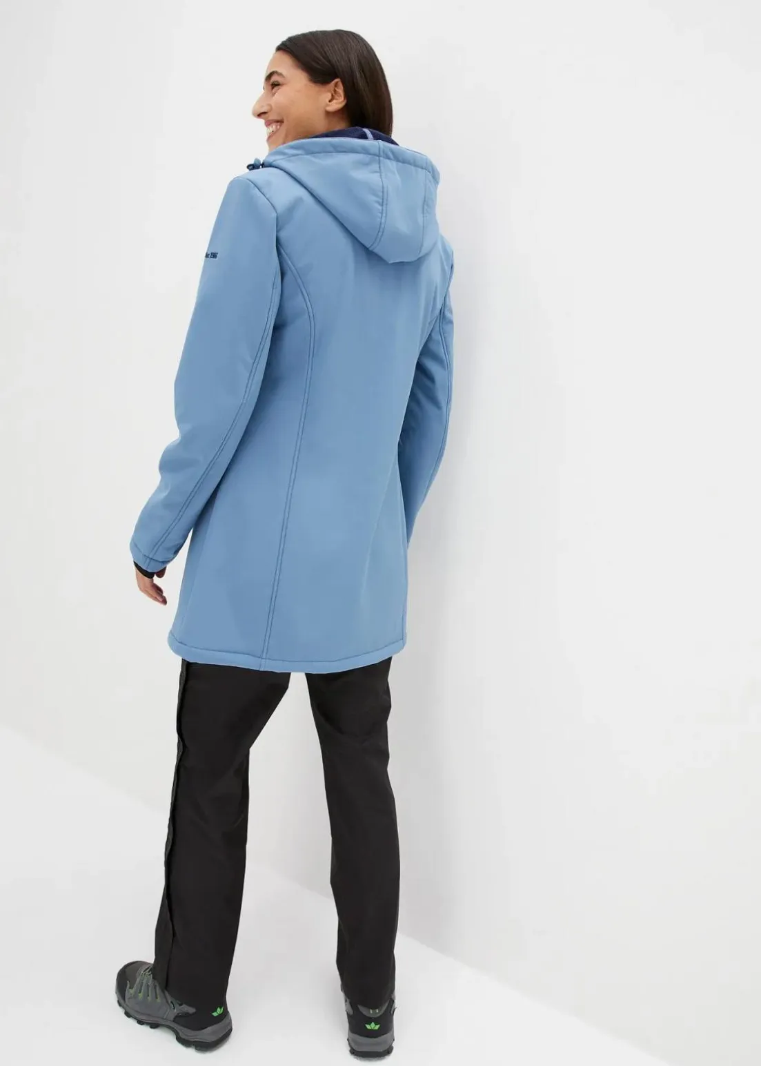 Auf Schritt und Tritt sorgt diese funktionale Softshell-Langjacke für angenehmen Komfort. Die Jacke mit geradem Saumverlauf ist atmungsaktiv und wärmt durch weiches Fleece im Inneren.Von vorne zeigt sich das Modell der Marke bpc mit 2-Wege-Reißverschluss und zwei verdeckten Reißverschlusstaschen. Die winddichte und wasserabweisende Funktions-Softshell-Langjacke hat eine Kapuze, die sich bei Bedarf abnehmen lässt. Die Softshelljacke ist von innen intensiv gerauht.