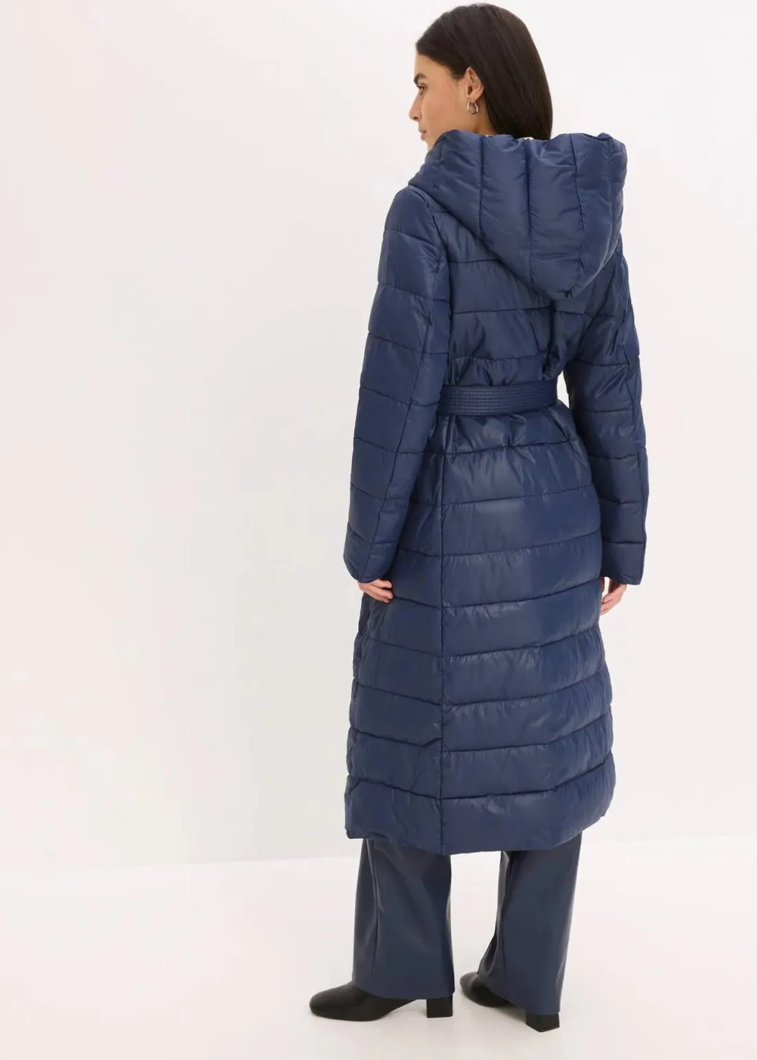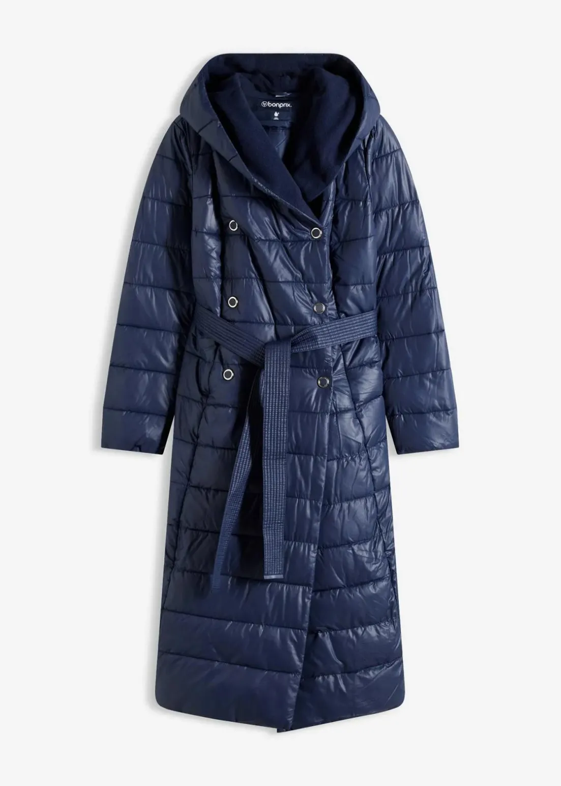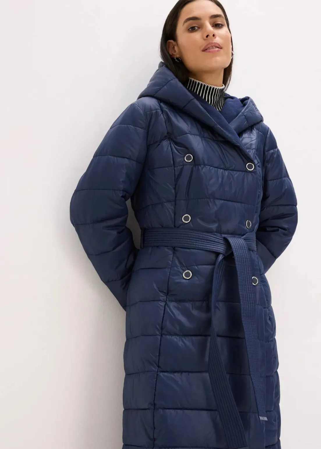 schöner Steppmantel mit Wollimitat Besatz und Bindegürtel (2-tlg.)