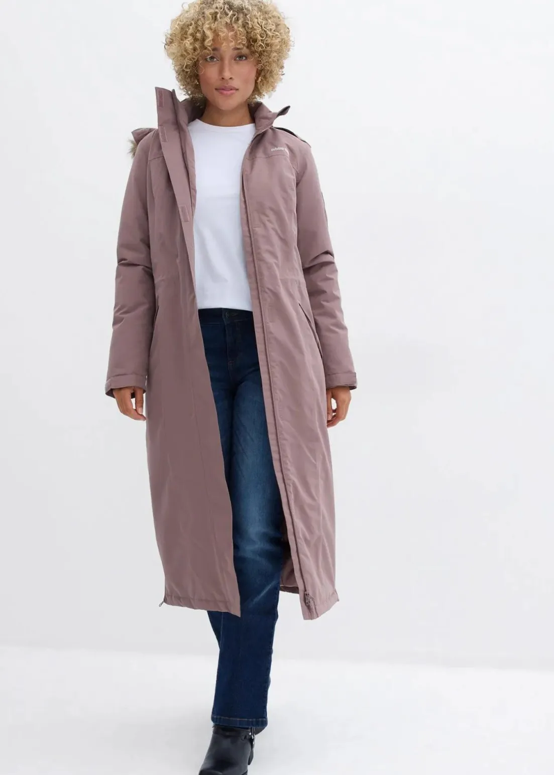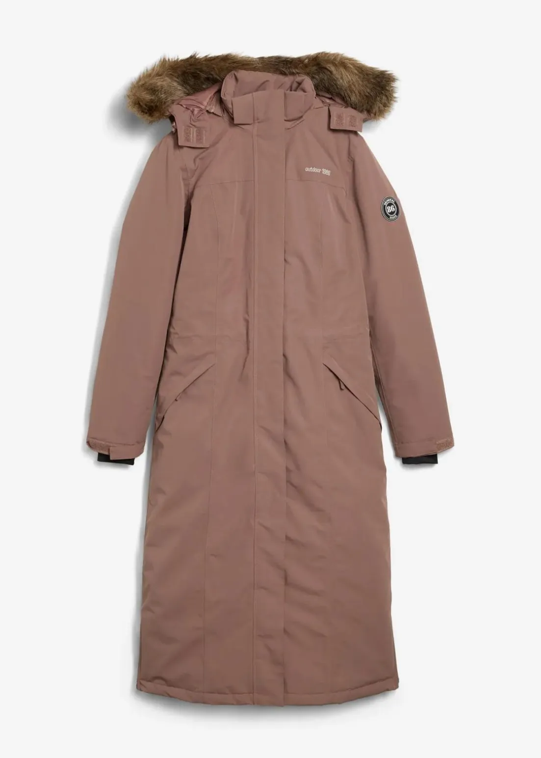 Innentasche mit Kabelfunktion, Fell und Kapuze sind abnehmbar, Daumenlöcher, 2-Wege-Reißverschluss mit Kinnschutz, weitenregulierbare Taille, Wassersäule 3000mm, Länge in Gr. 42 ca. 120 cm.